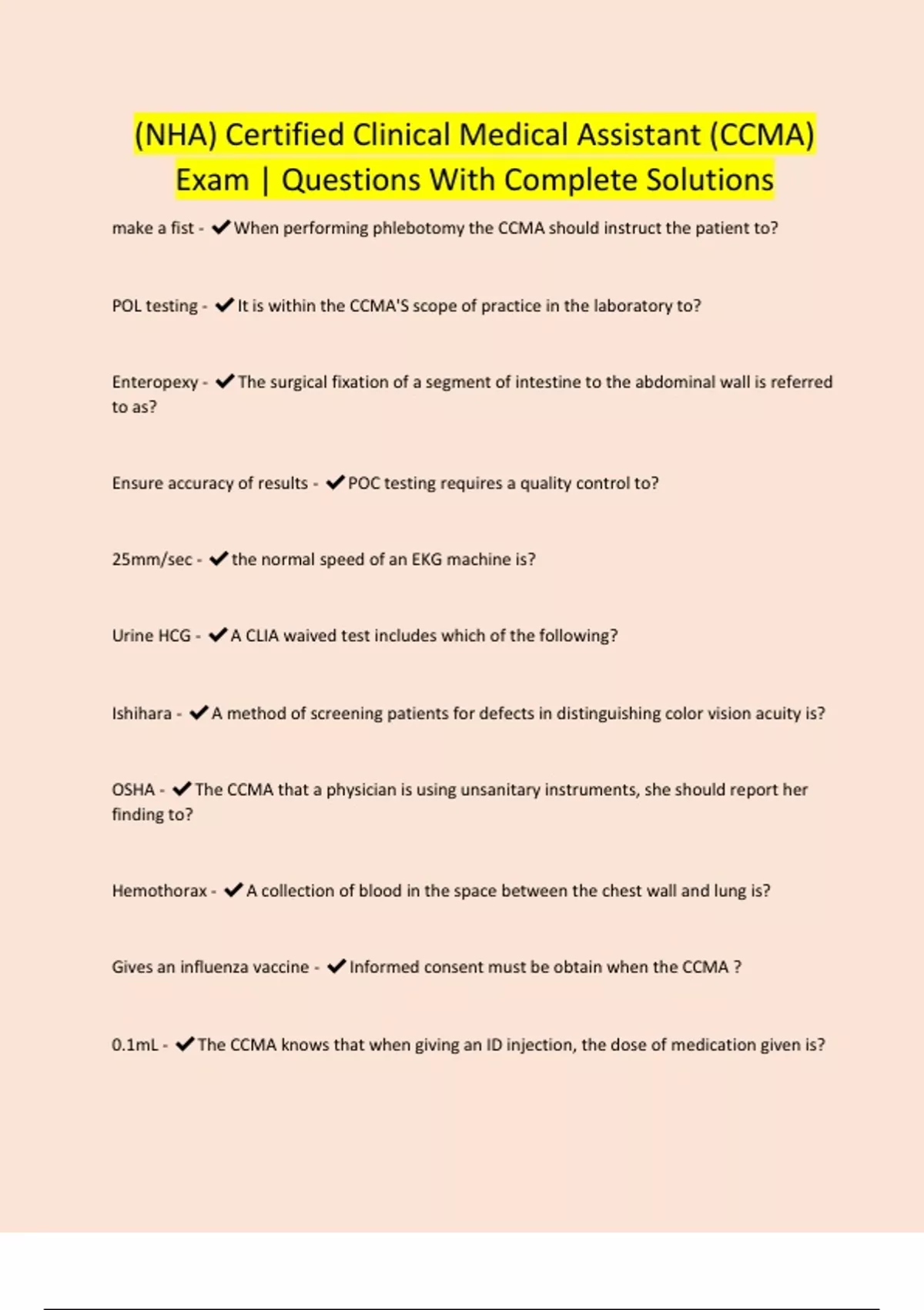 (NHA) Certified Clinical Medical Assistant (CCMA) Exam | Questions With Complete Solutions