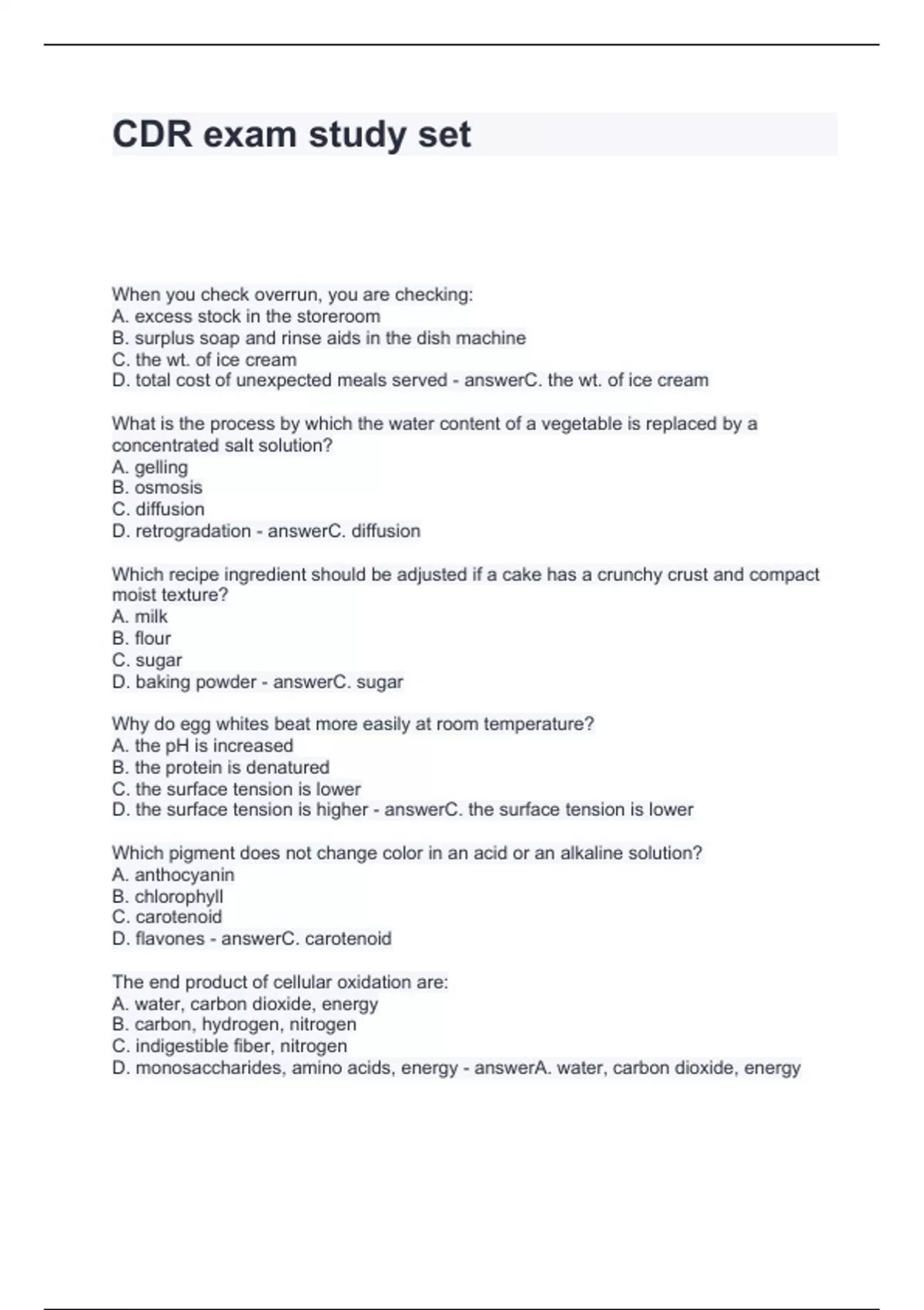 CDR exam study set Questions and Answers 2024