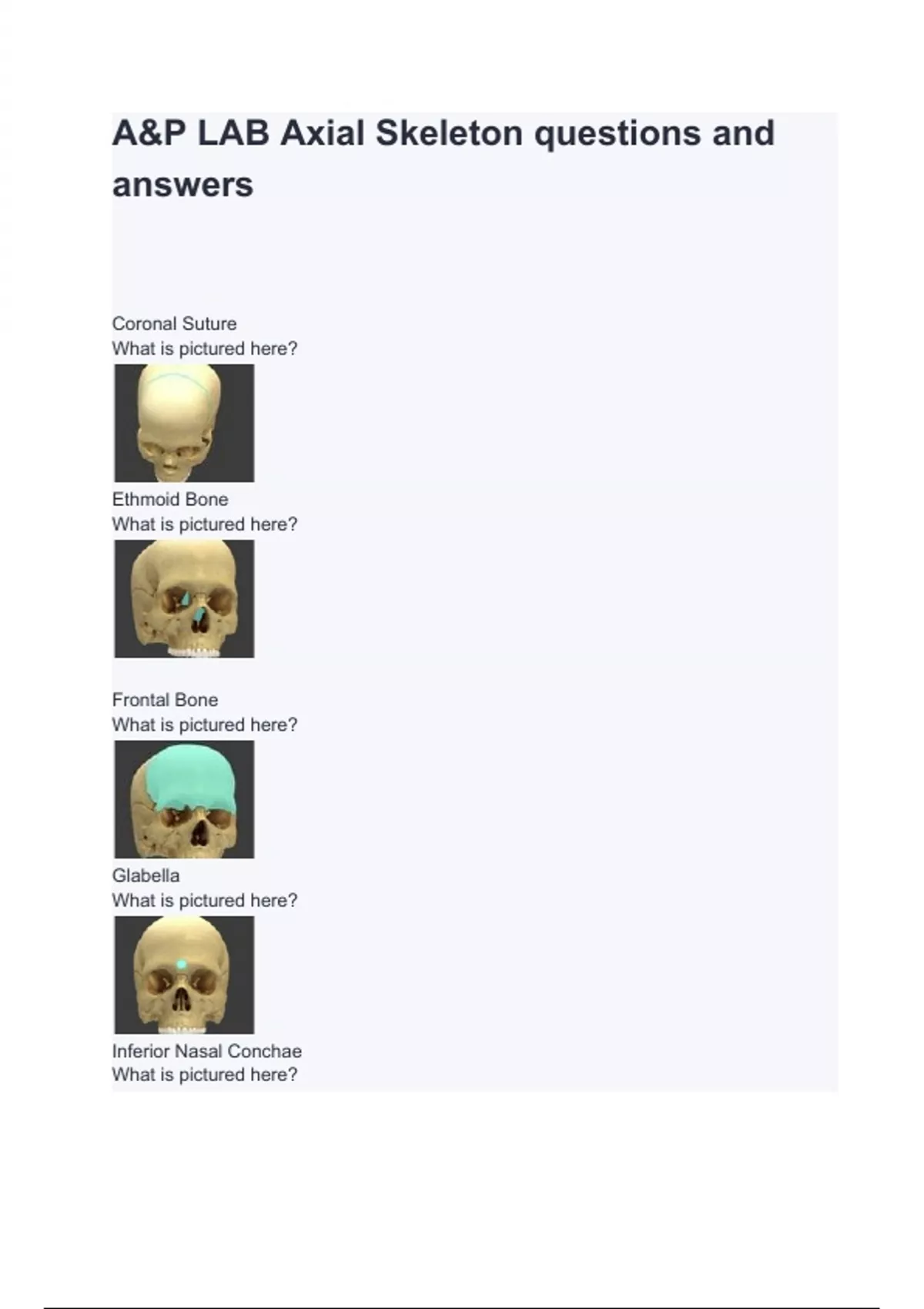 A&P LAB Axial Skeleton questions and answers
