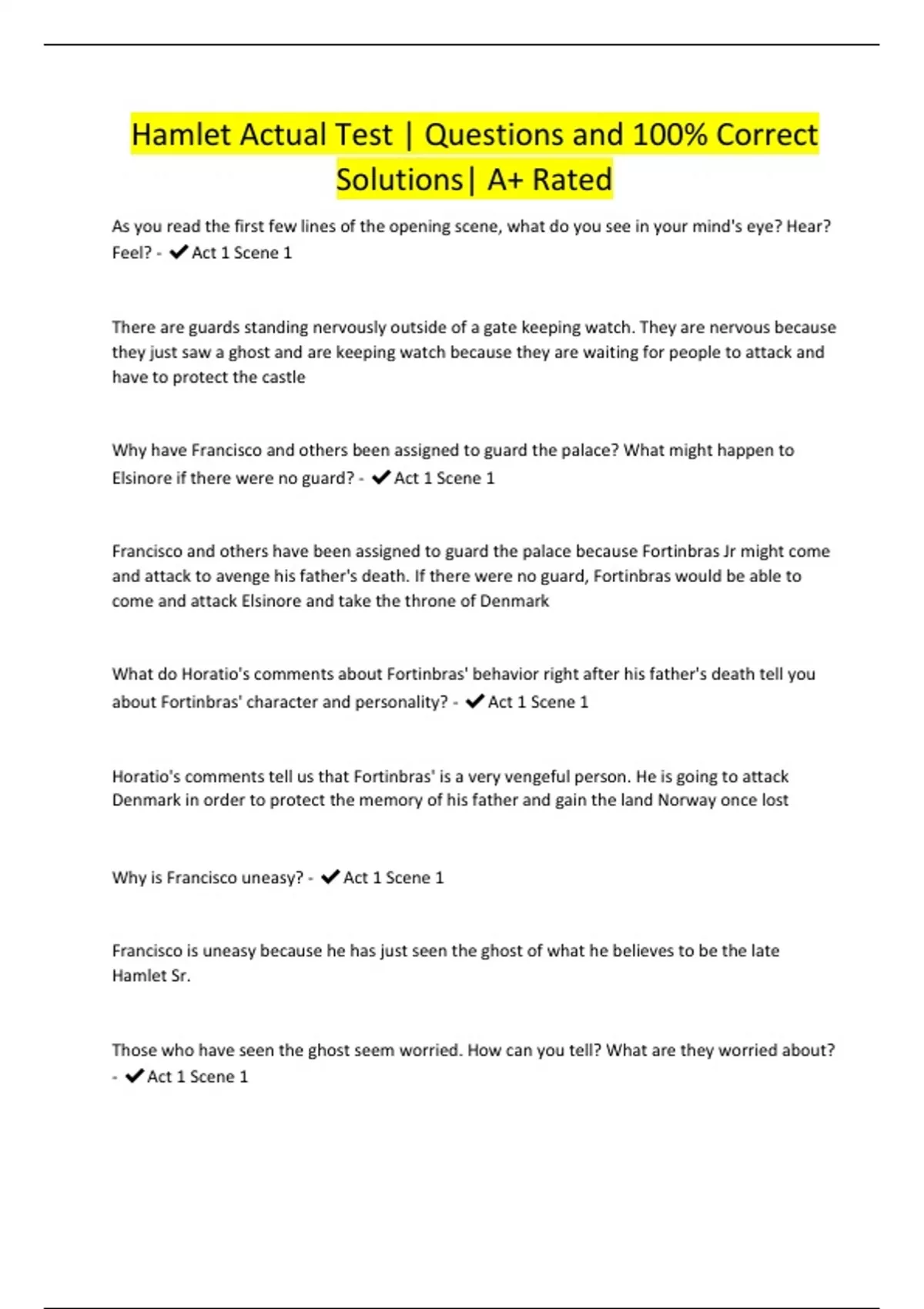 Hamlet Actual Test | Questions and 100% Correct Solutions| A+ Rated