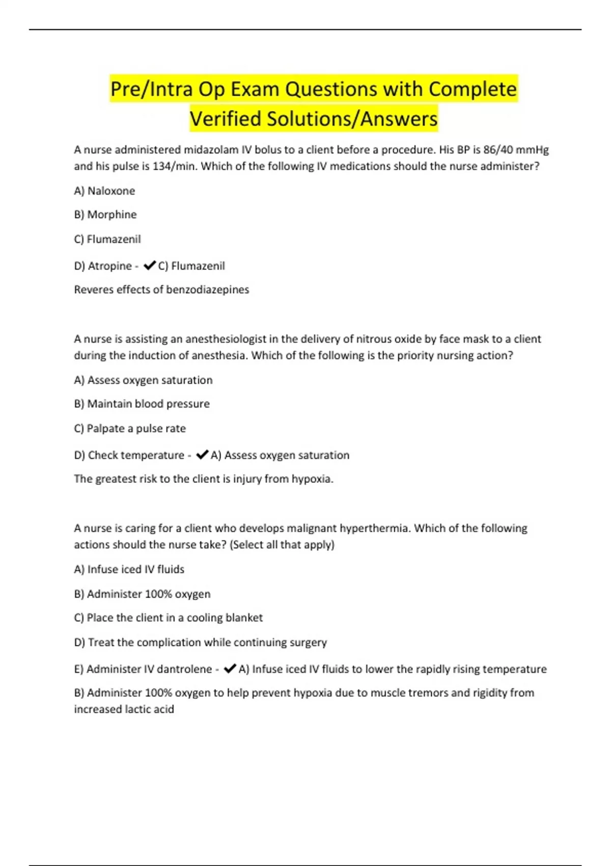 Pre/Intra Op Exam Questions with Complete Verified Solutions/Answers