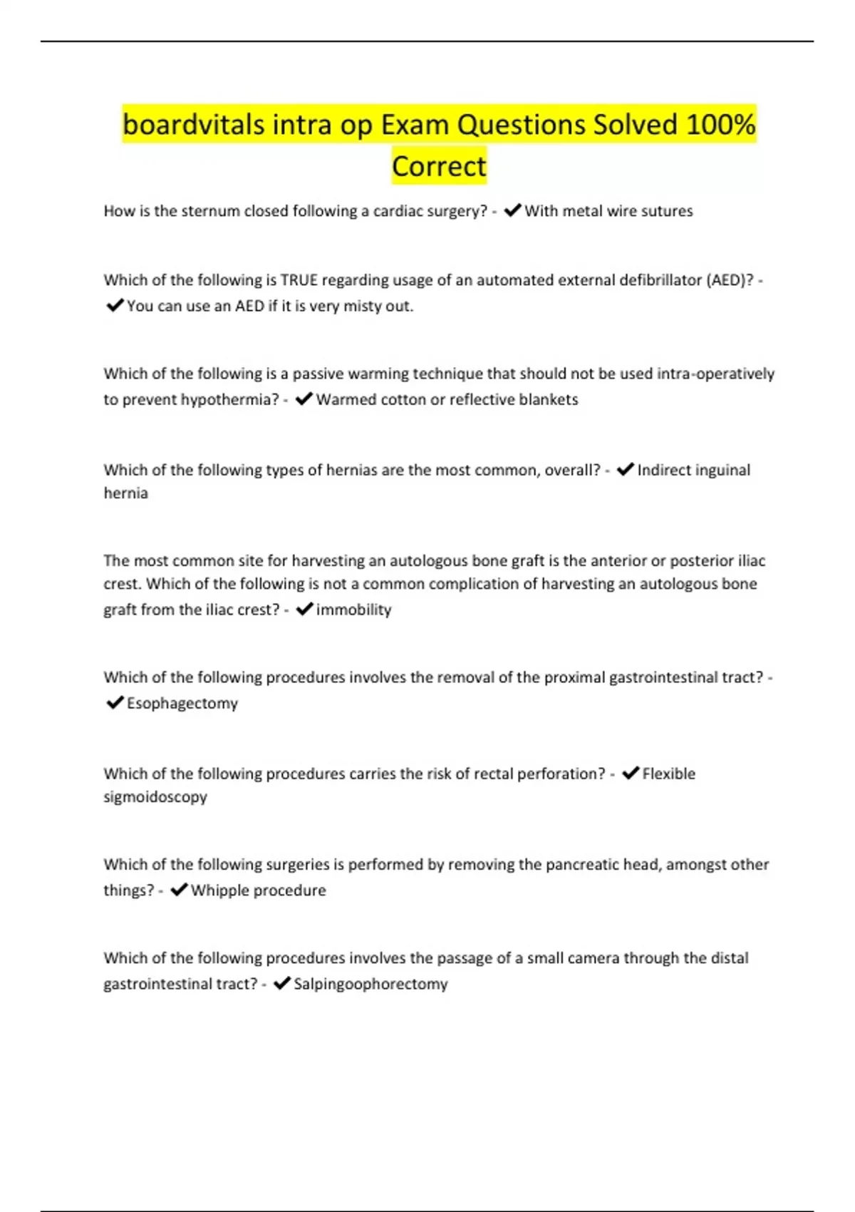 boardvitals intra op Exam Questions Solved 100% Correct