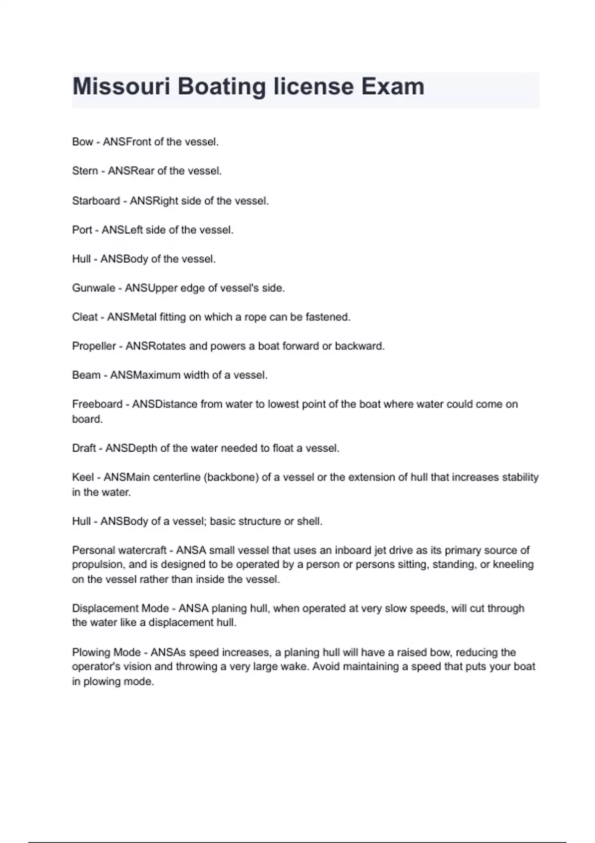 Draft - ANSDepth of water needed to float a vessel.