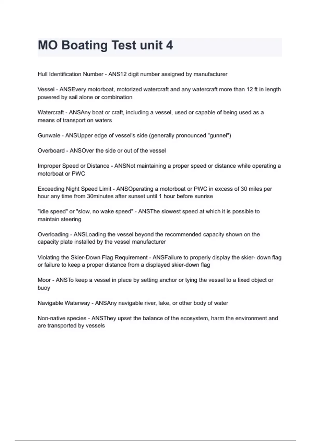 Watercraft - ANSAny boat or craft, including a vessel, used or capable of being used as a
