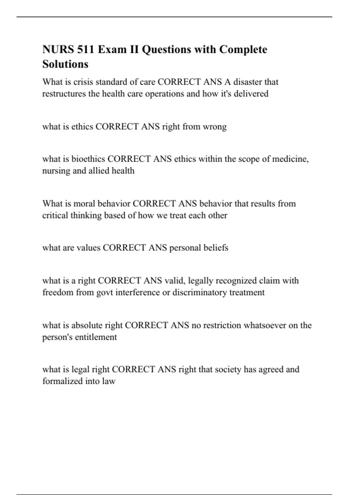 nurs 511 exam ii questions with complete solutions