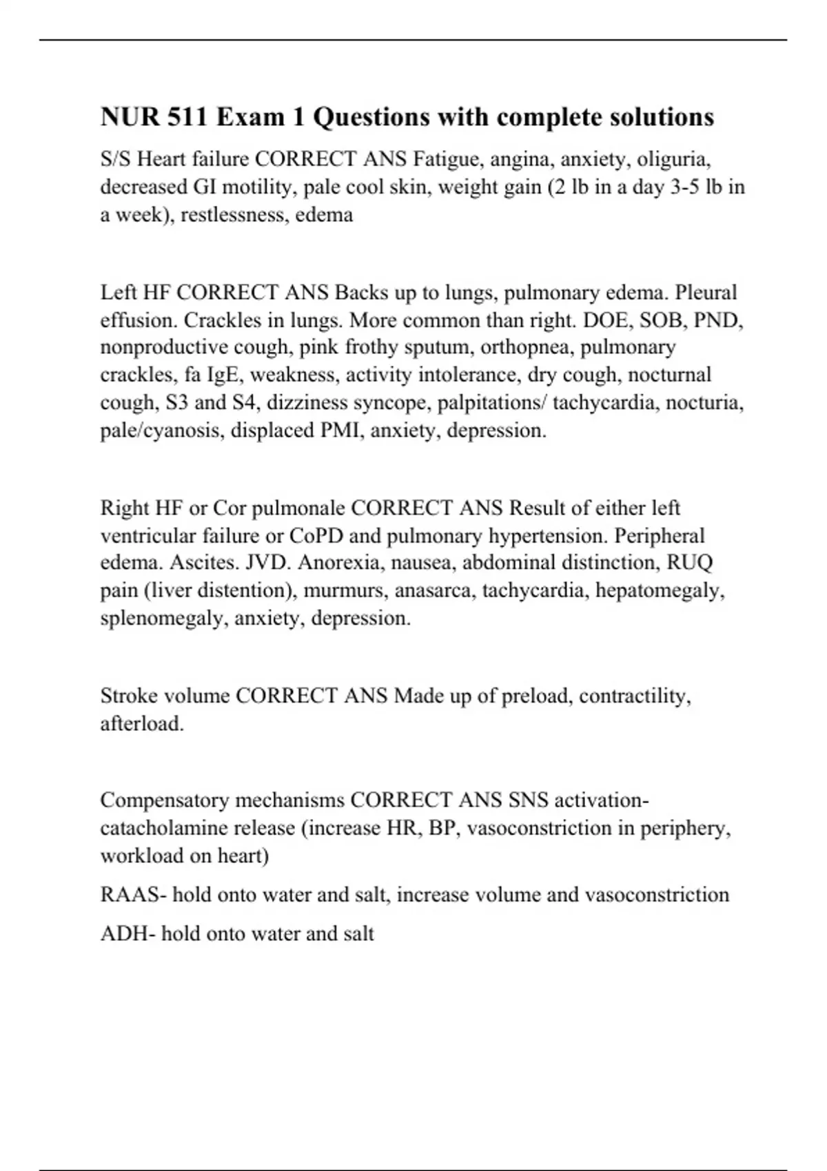nur 511 exam 1 questions with complete solutions