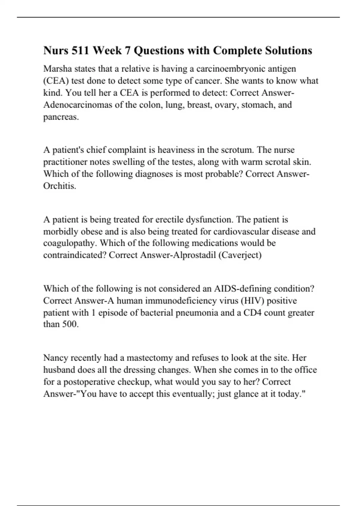 Nurs 511 Week 7 Questions with Complete Solutions.