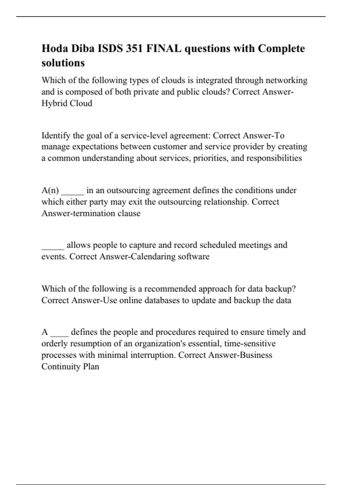 Hoda Diba ISDS 351 FINAL questions with Complete solutions.