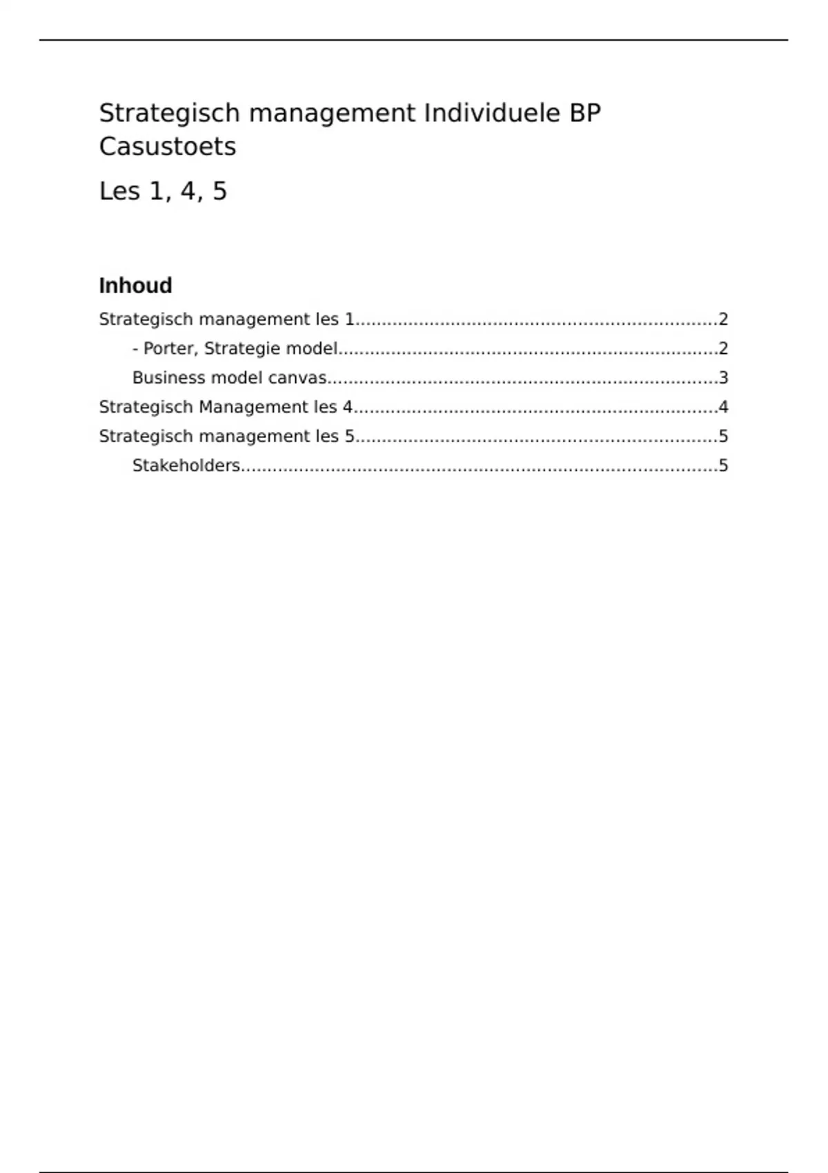 Strategisch Management samenvatting: Essentiële concepten voor effectieve bedrijfsstrategieën, geschikt voor individuele casustoetsen in jaar 2 van Business Studies bij Inholland Hogeschool. Deze samenvatting is van toepassing voor les 1, 4, 5 van Strategisch Management in Semester 1 voor de individuele casustoets