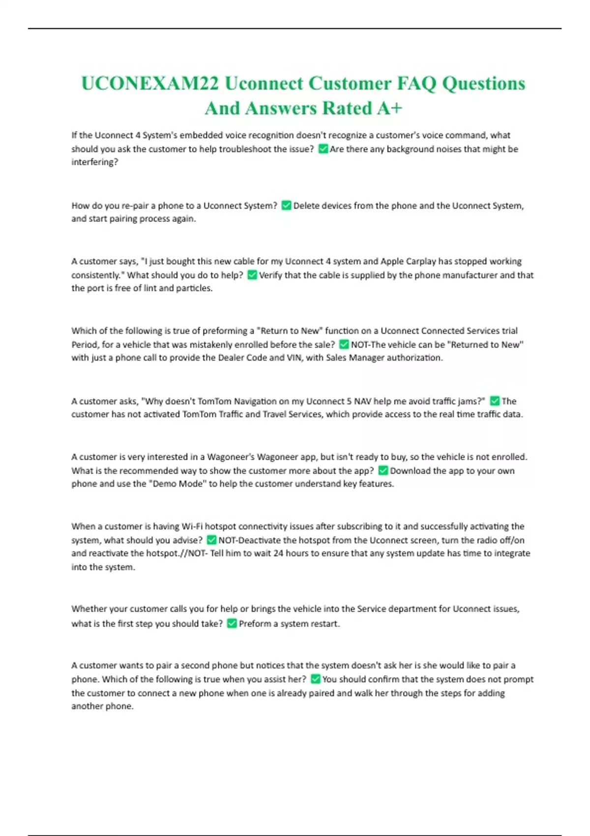 UCONEXAM22 Uconnect Customer FAQ Questions And Answers Rated A+ UCONEXAM22 Uconnect Customer FAQ Questions And Answers Rated A+