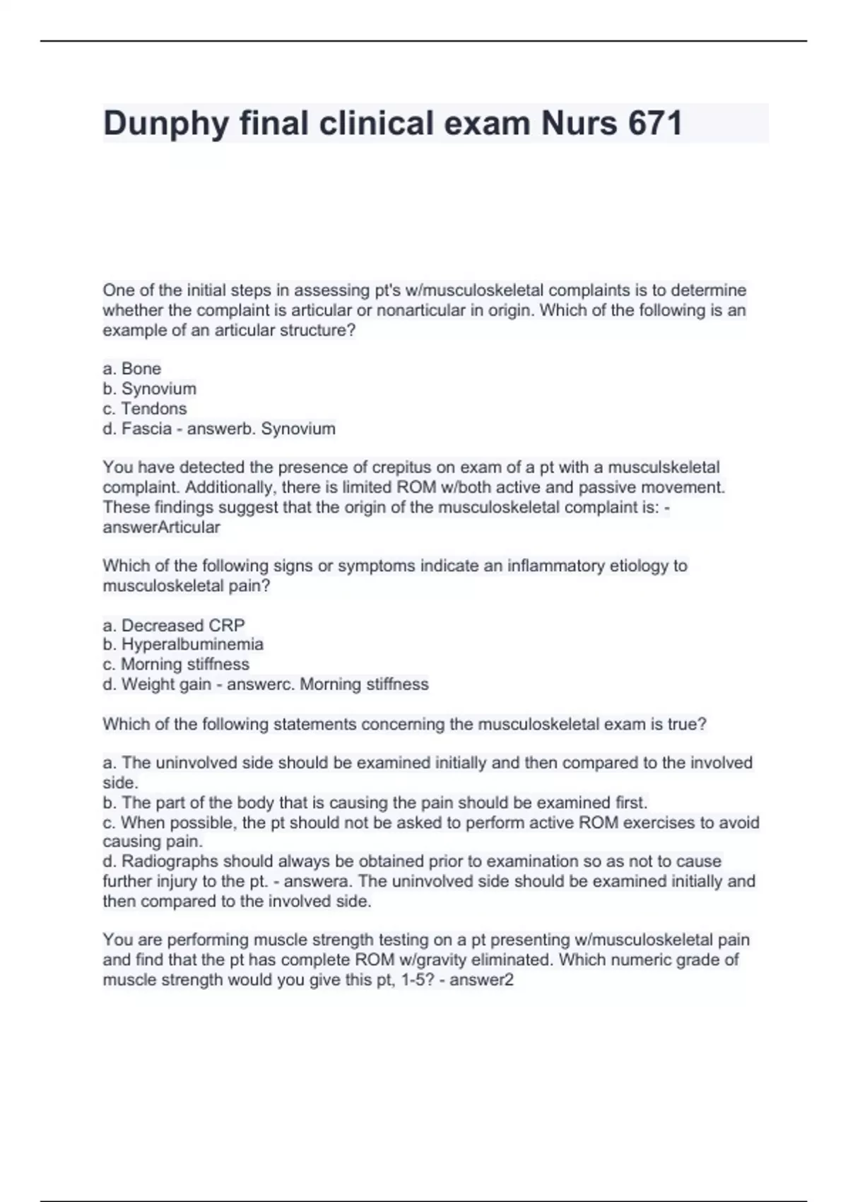 Dunphy final clinical exam Nurs 671 Questions and Answers 100% solved