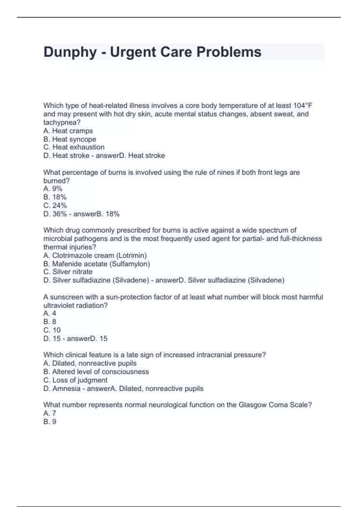 Dunphy - Urgent Care Problems Questions and Answers Graded A+