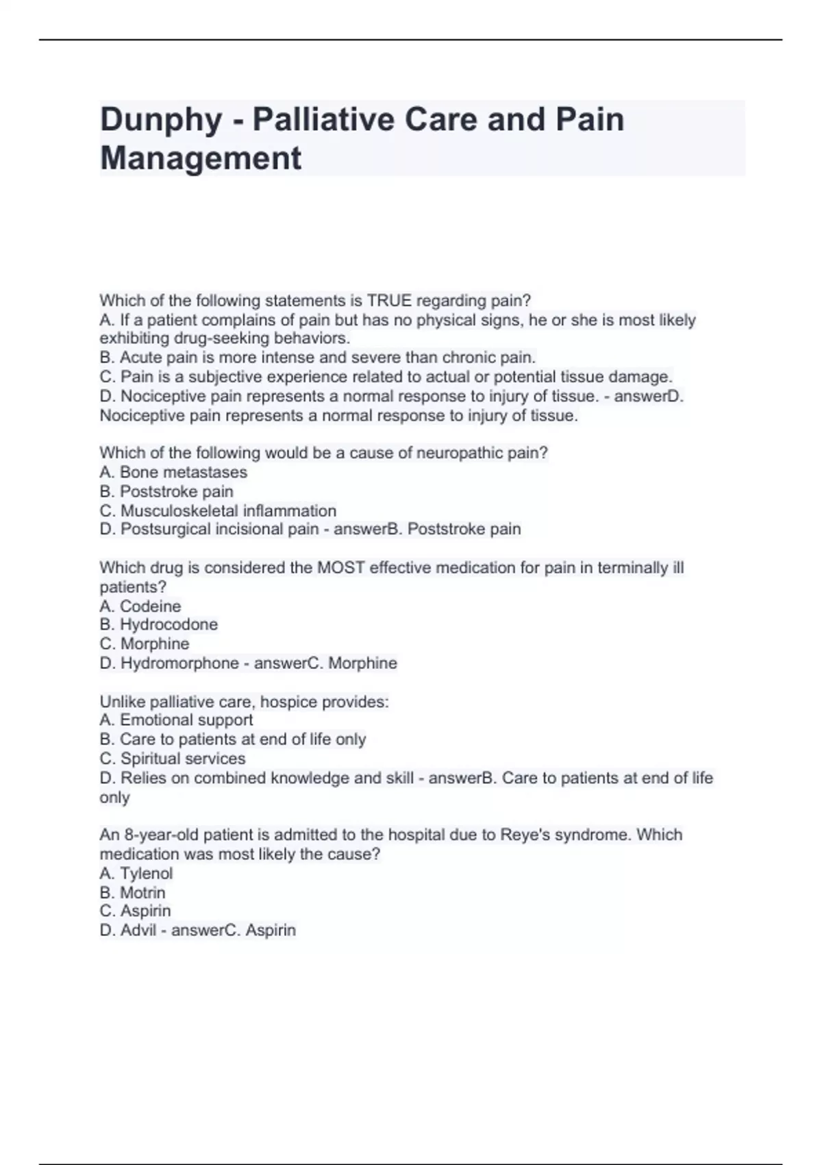 Dunphy - Palliative Care and Pain Management Questions and Answers Scored A+