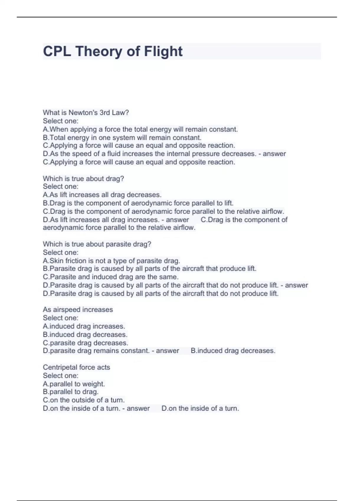 CPL Theory of Flight Questions and Answers 2024