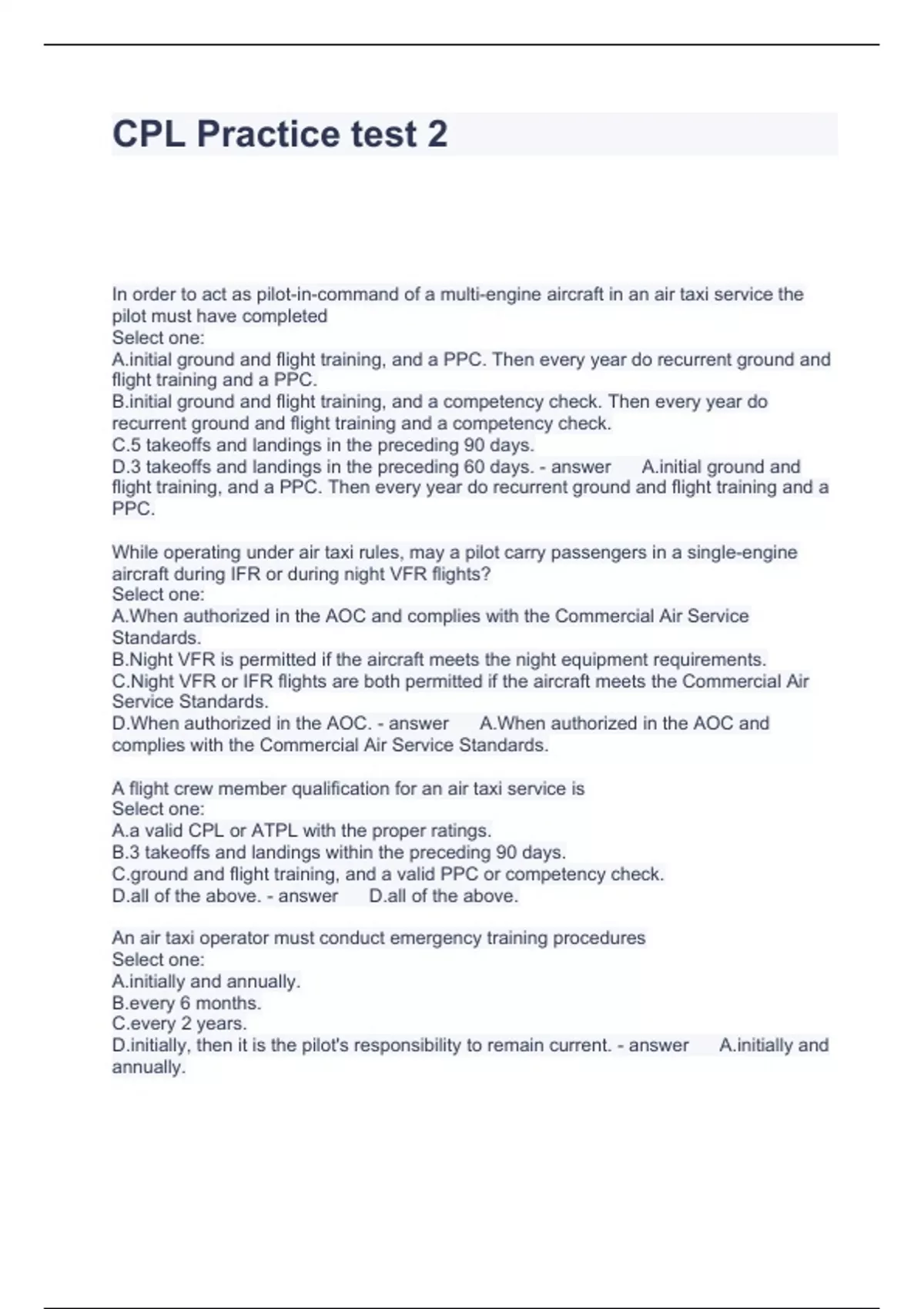 Exam of 15 pages for the course CPL at CPL (CPL Practice test 2)