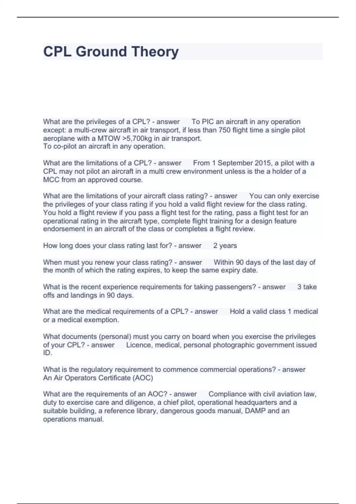 Exam of 8 pages for the course CPL at CPL (CPL Ground Theory)