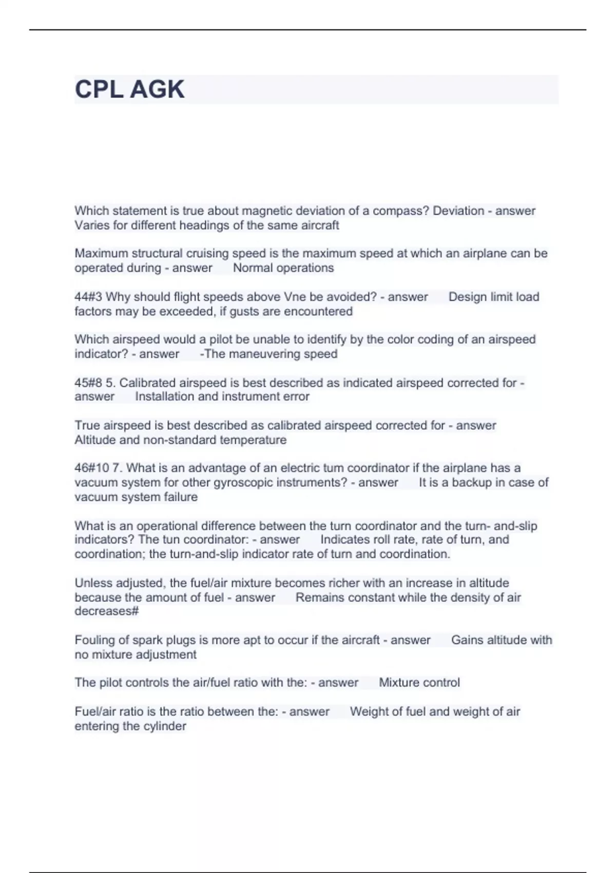 CPL AGK QUESTIONS AND ANSWERS GRADED A+
