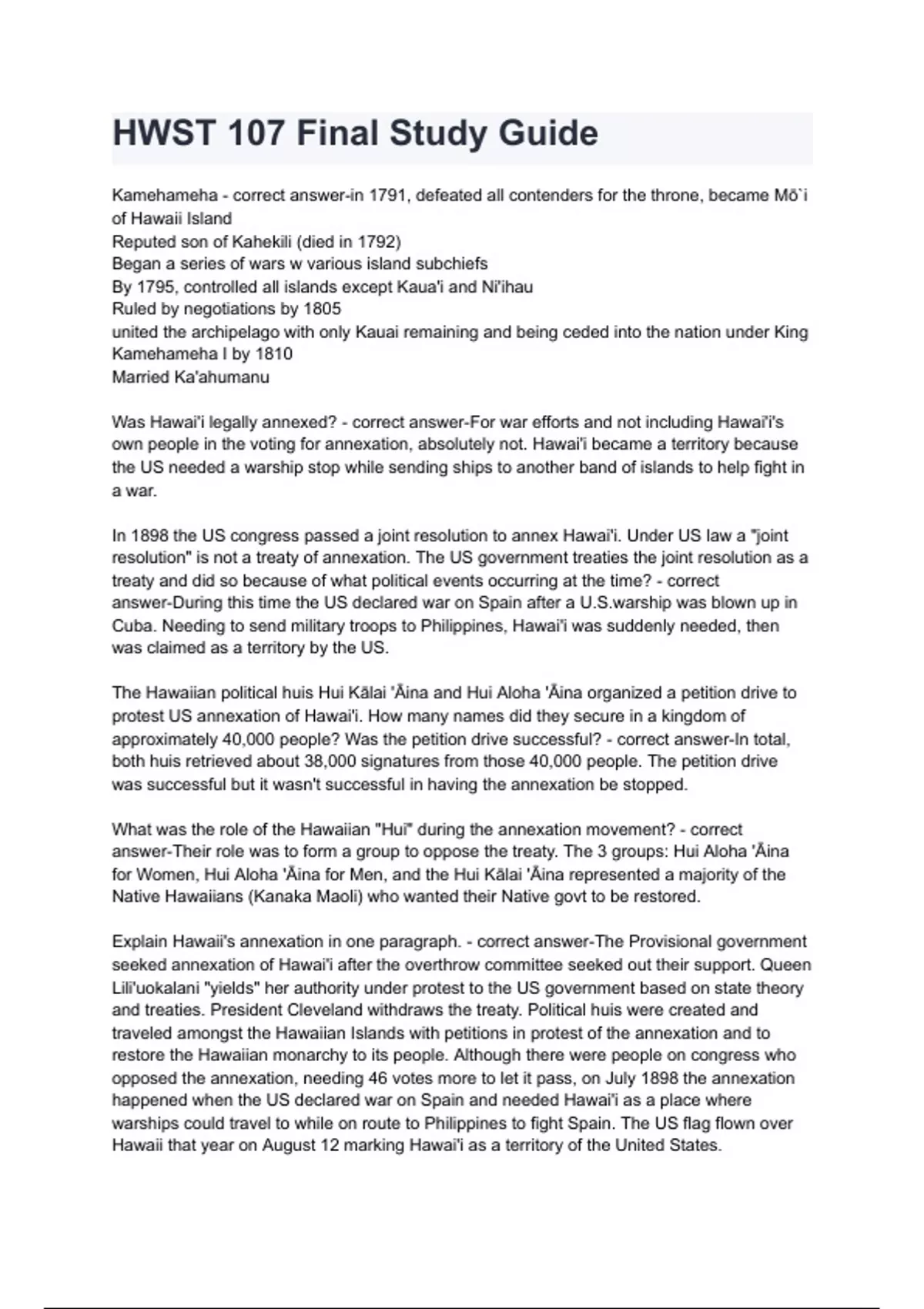 hwst 107 final study guide kamehameha correct an