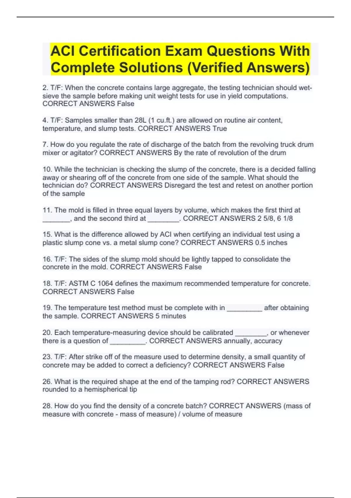 ACI Certification Exam Questions With Complete Solutions (Verified Answers)