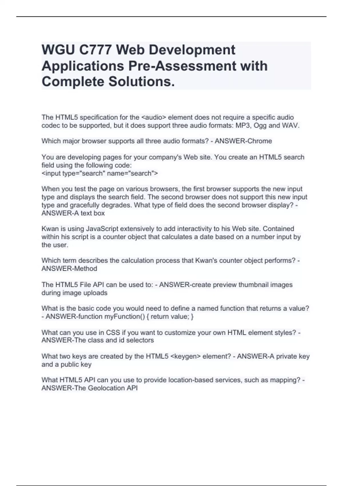 WGU C777 Web Development Applications Pre-Assessment with Complete Solutions.