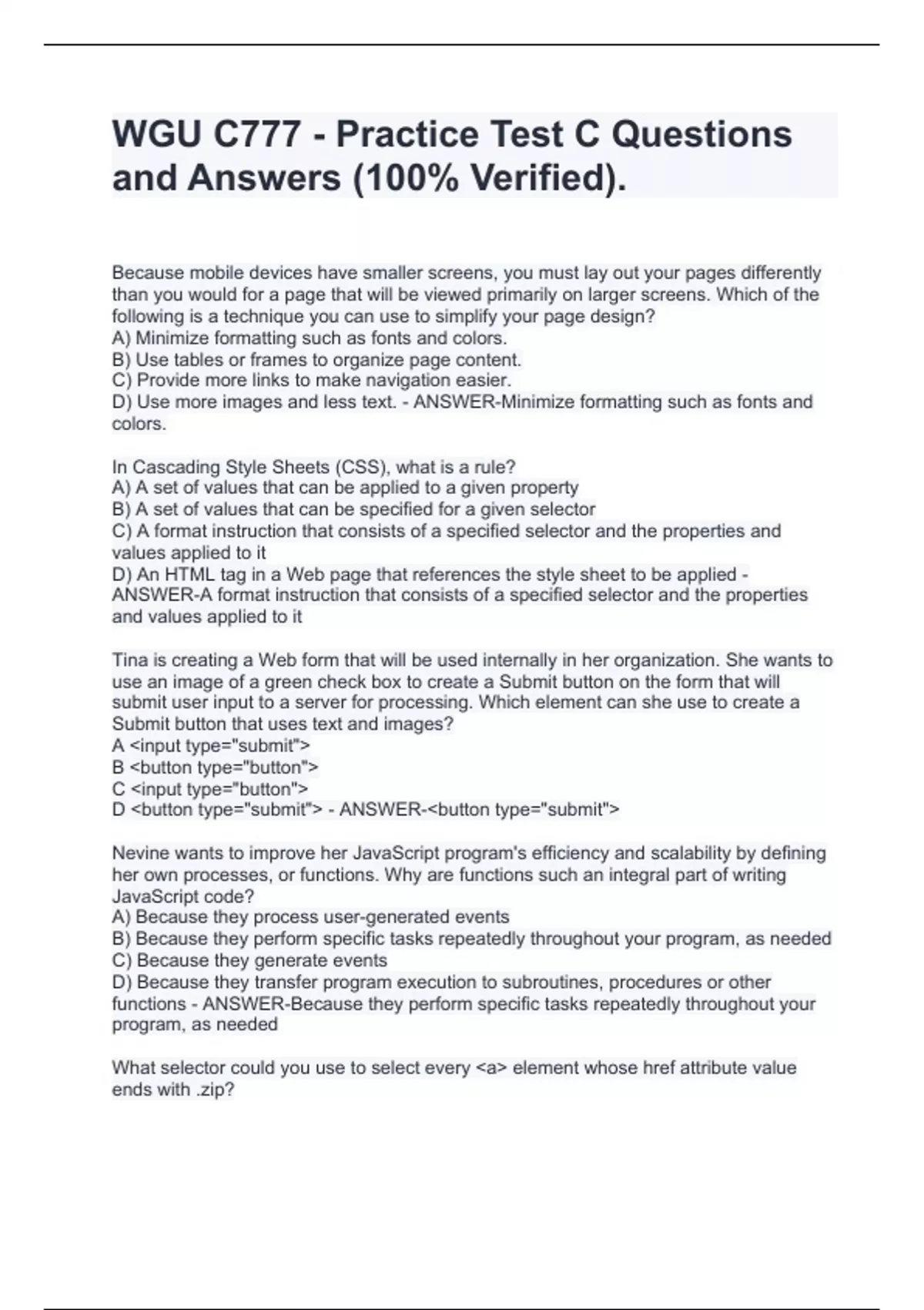 wgu c777 practice test c stuvia