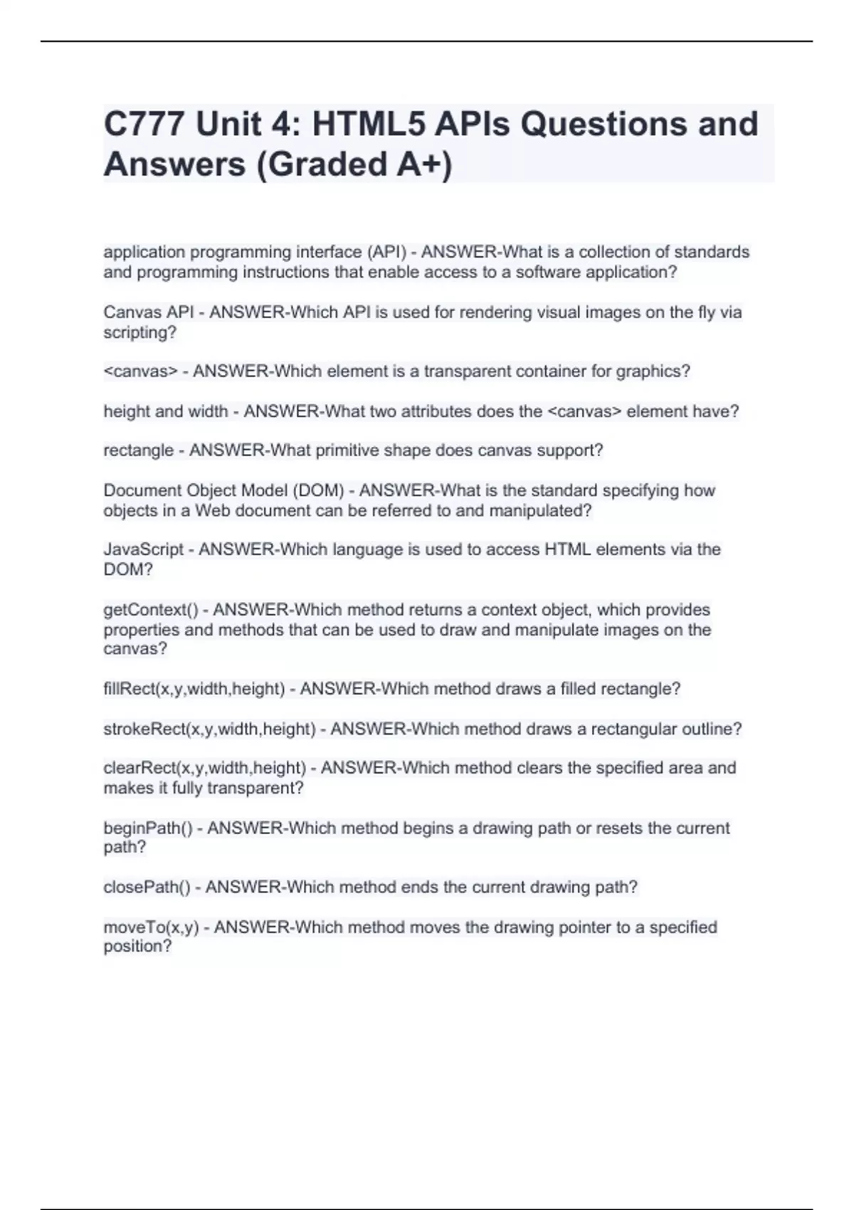 C777 Unit 4: HTML5 APIs Questions and Answers (Graded A+)