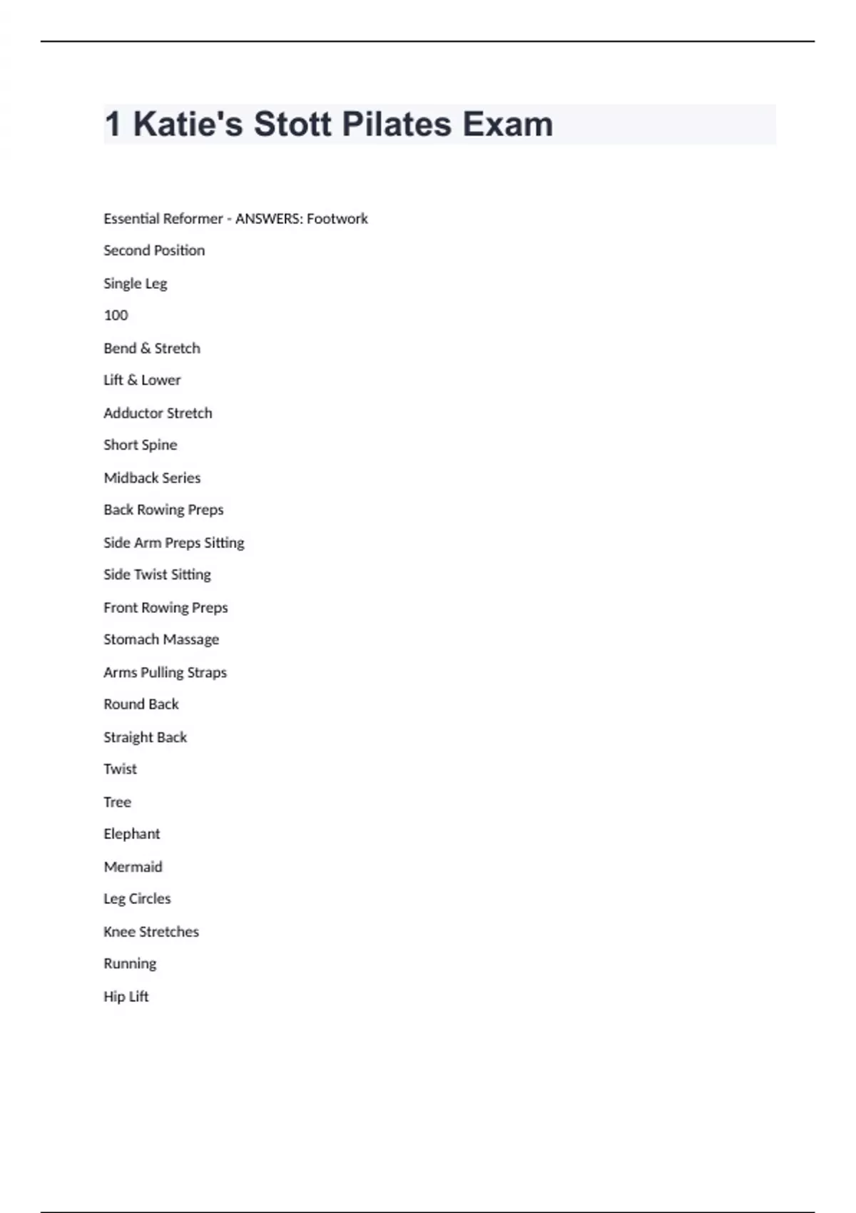 1 Katie's Stott Pilates Exam 2024 with correct answers