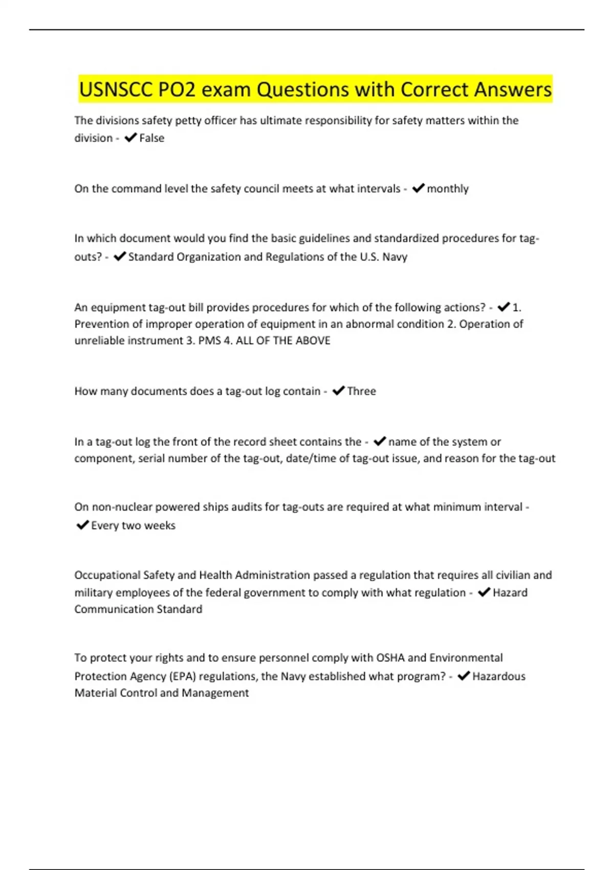 usnscc po2 exam questions with correct answers