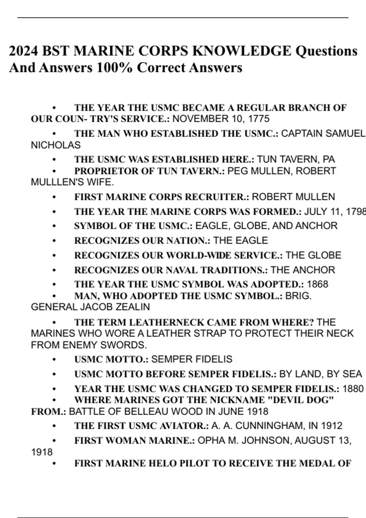 USMC Knowledge BST & Board Questions| 100% Correct Answers | Latest Update 2023/2024 With Over 800+ Questions