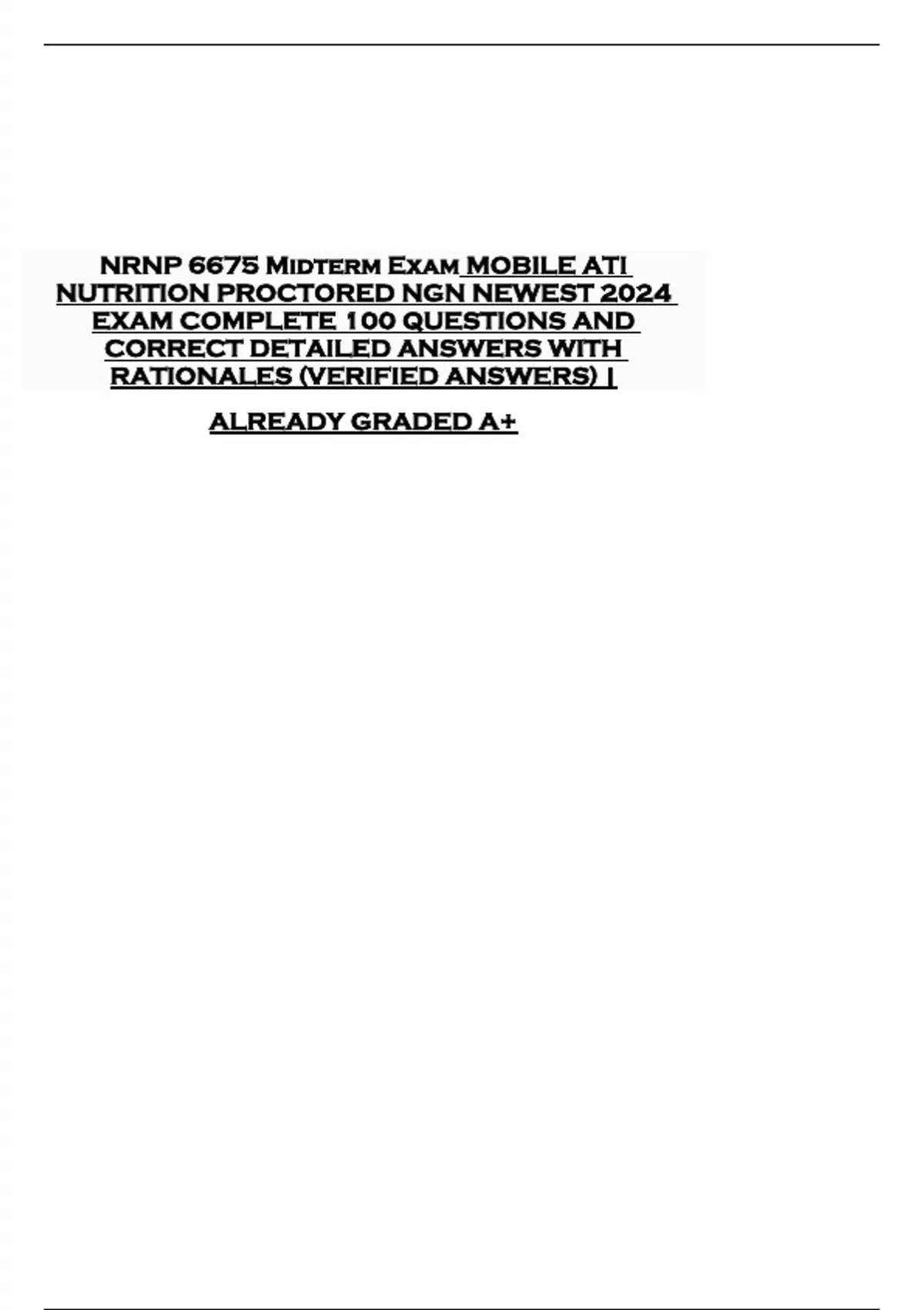 NRNP 6675 Midterm Exam MOBILE ATI NUTRITION PROCTORED NGN NEWEST 2024 EXAM COMPLETE 100 QUESTIONS AND CORRECT DETAILED ANSWERS WITH RATIONALES (VERIFIED ANSWERS) | ALREADY GRADED A+