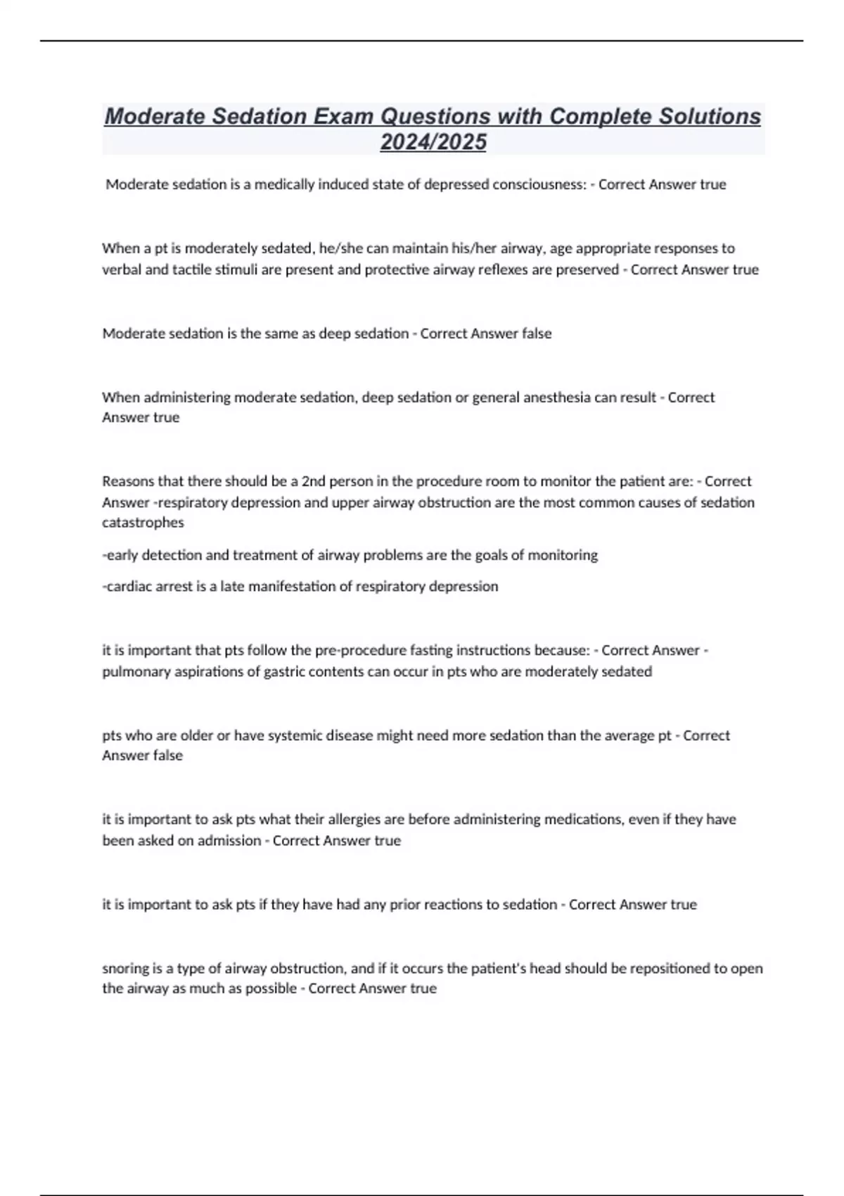 Moderate Sedation Exam Questions with Complete Solutions 2024/2025