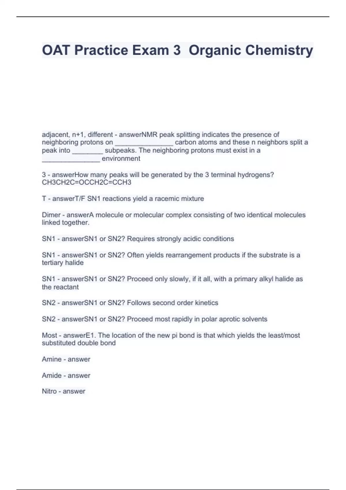 OAT Practice Exam 3 Organic Chemistry questions and answers Rated A+