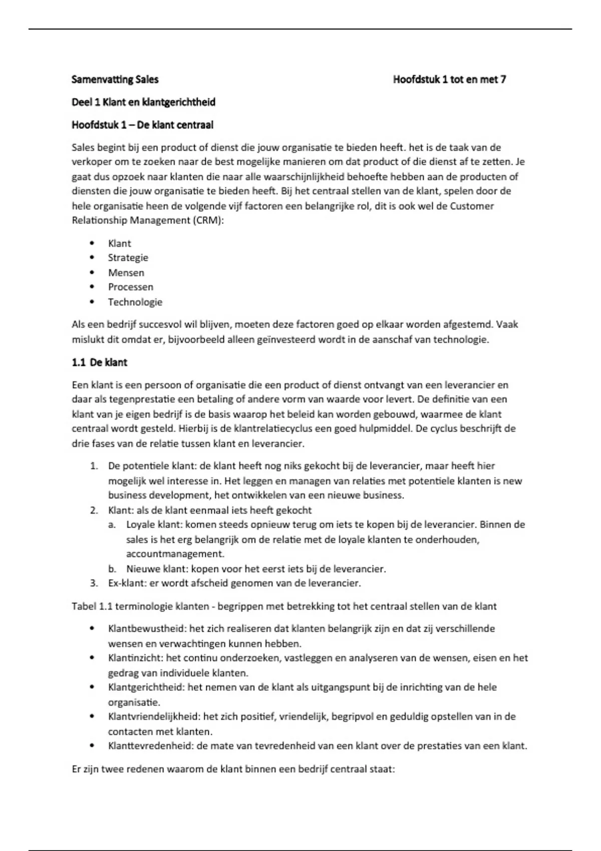 Samenvatting Sales Hoofdstuk 1 tot en met 7