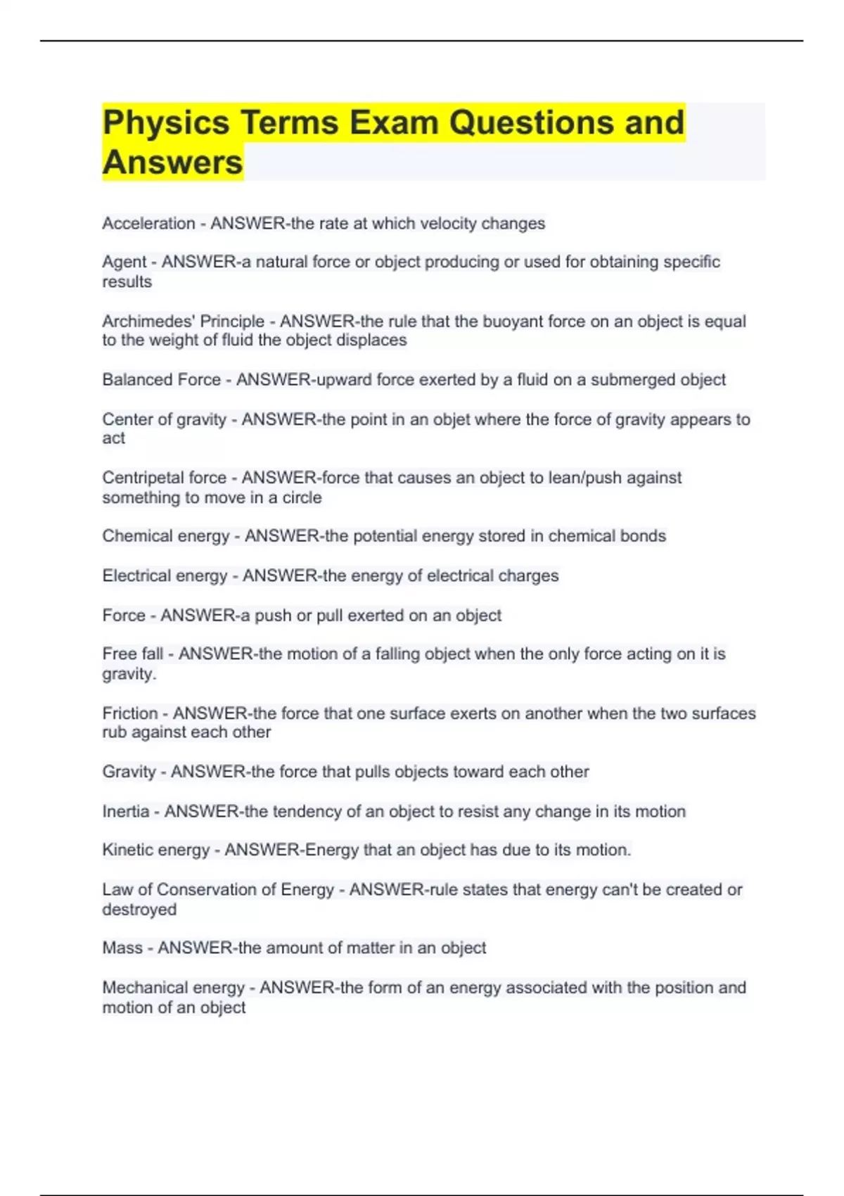 Mechanical energy - ANSWER-the form of an energy associated with the position and