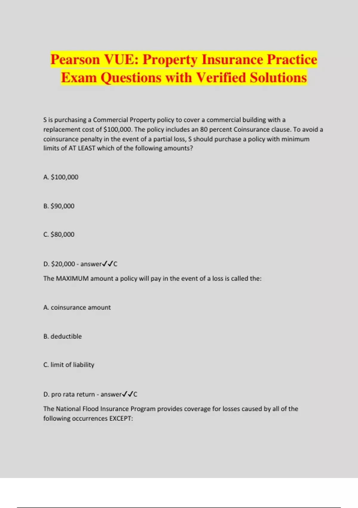 Pearson VUE: Property Insurance Practice Exam Questions with Verified Solutions