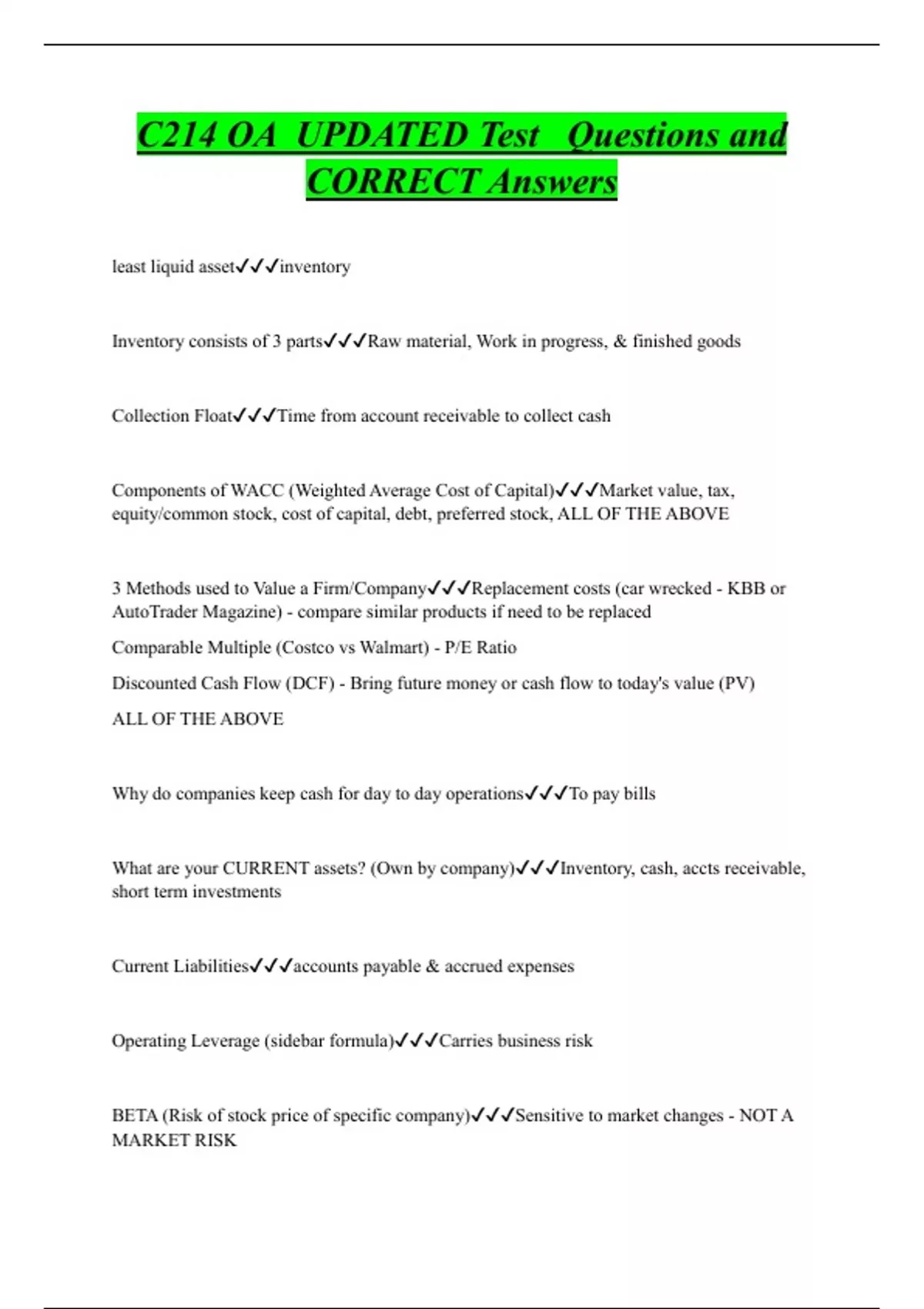 C214 OA UPDATED Test Questions and CORRECT Answers
