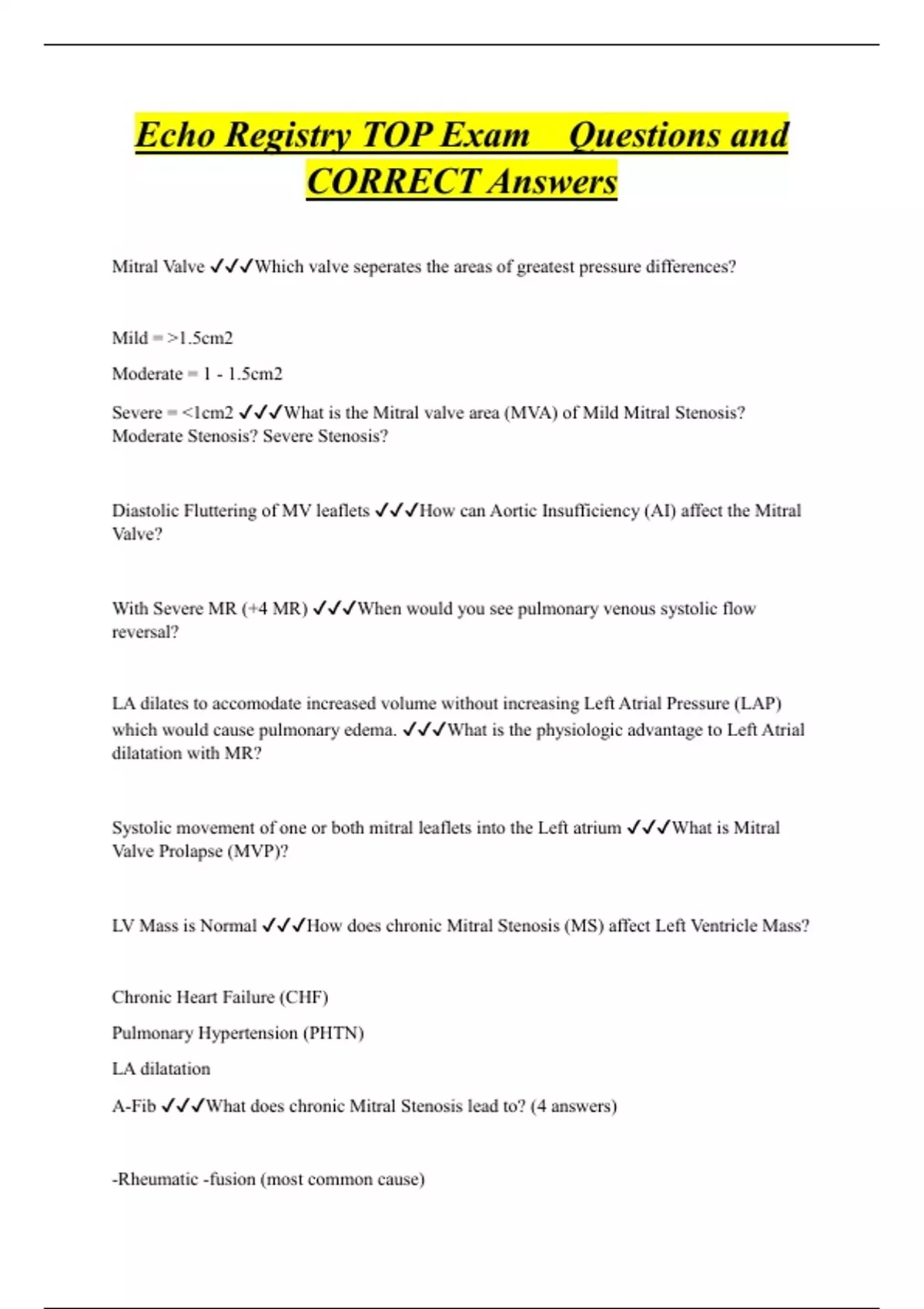 Echo Registry TOP Exam Questions and CORRECT Answers