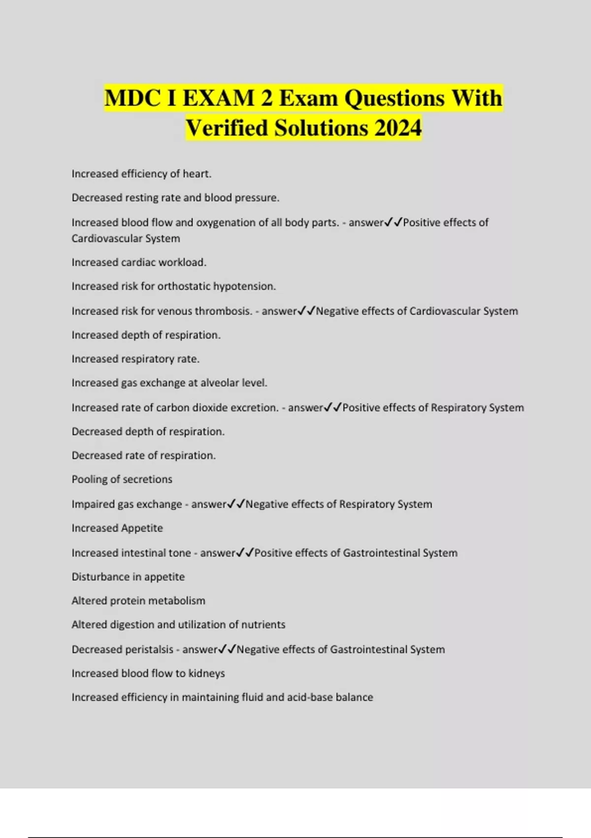 MDC I EXAM 2 Exam Questions With Verified Solutions 2024
