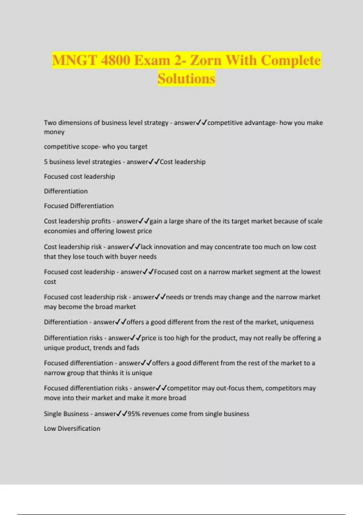 MNGT 4800 Exam 2- Zorn With Complete Solutions