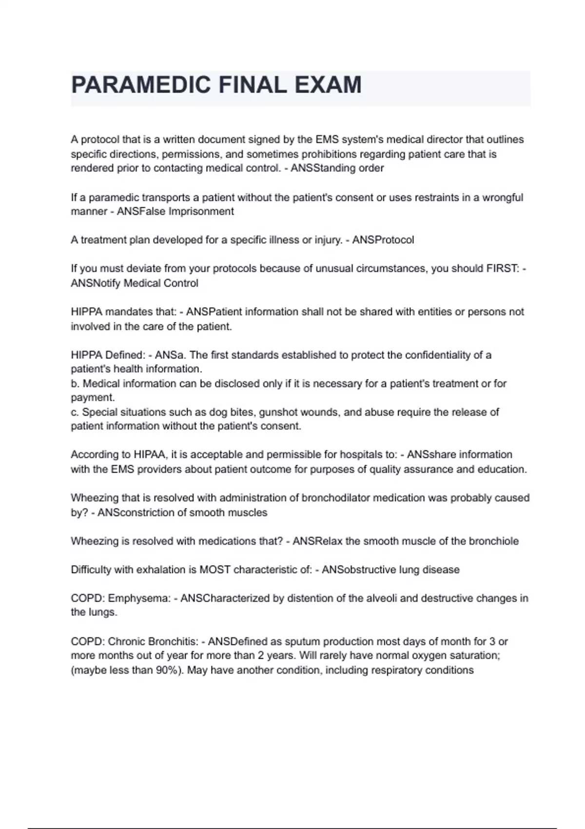 PARAMEDIC FINAL EXAM