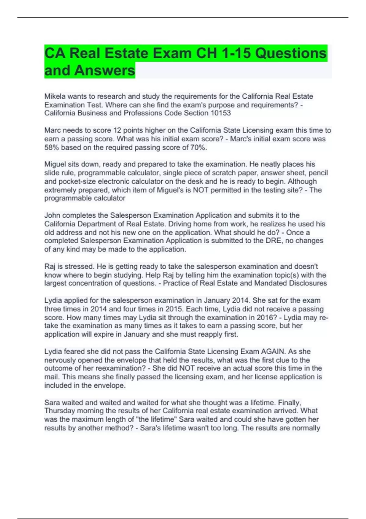 CA Real Estate Exam CH 1-15 Questions and Answers
