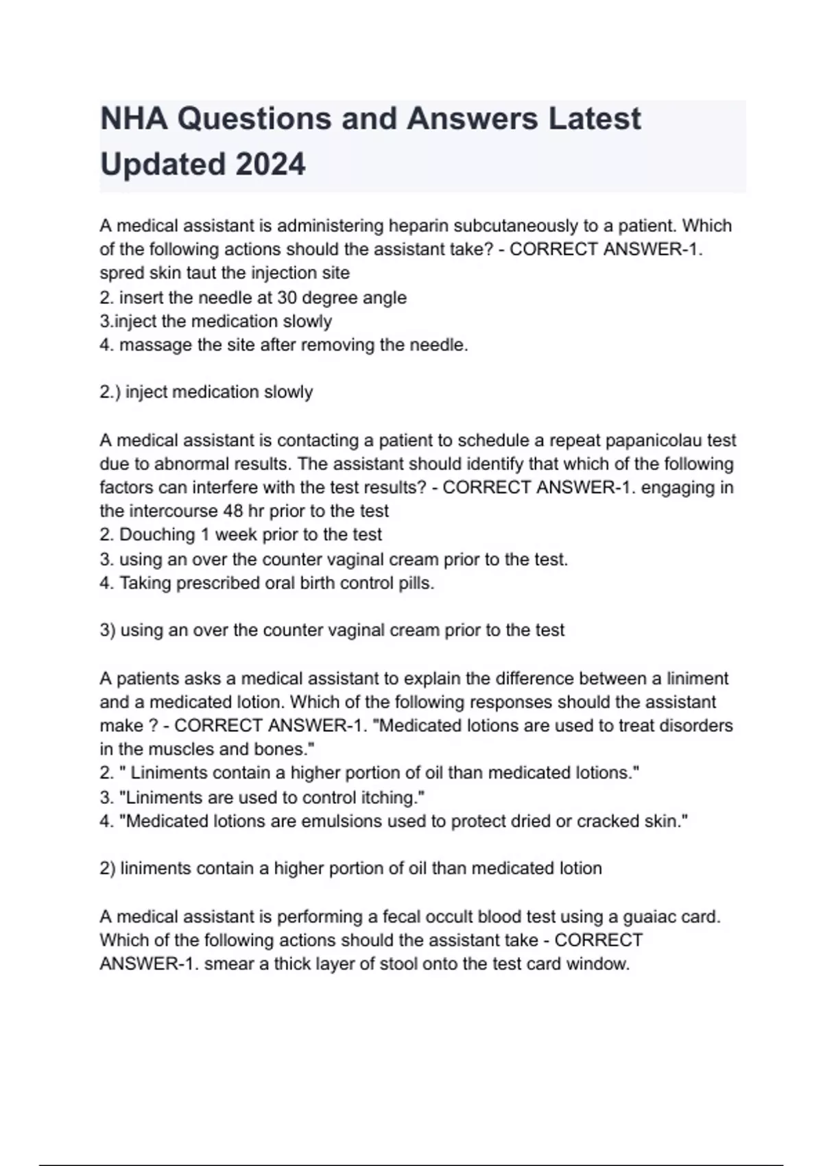 NHA Questions and Answers Latest Updated 2024