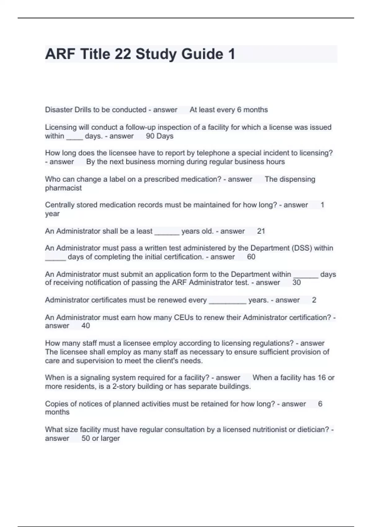 ARF Title 22 Study Guide 1 Questions and Answers 2024