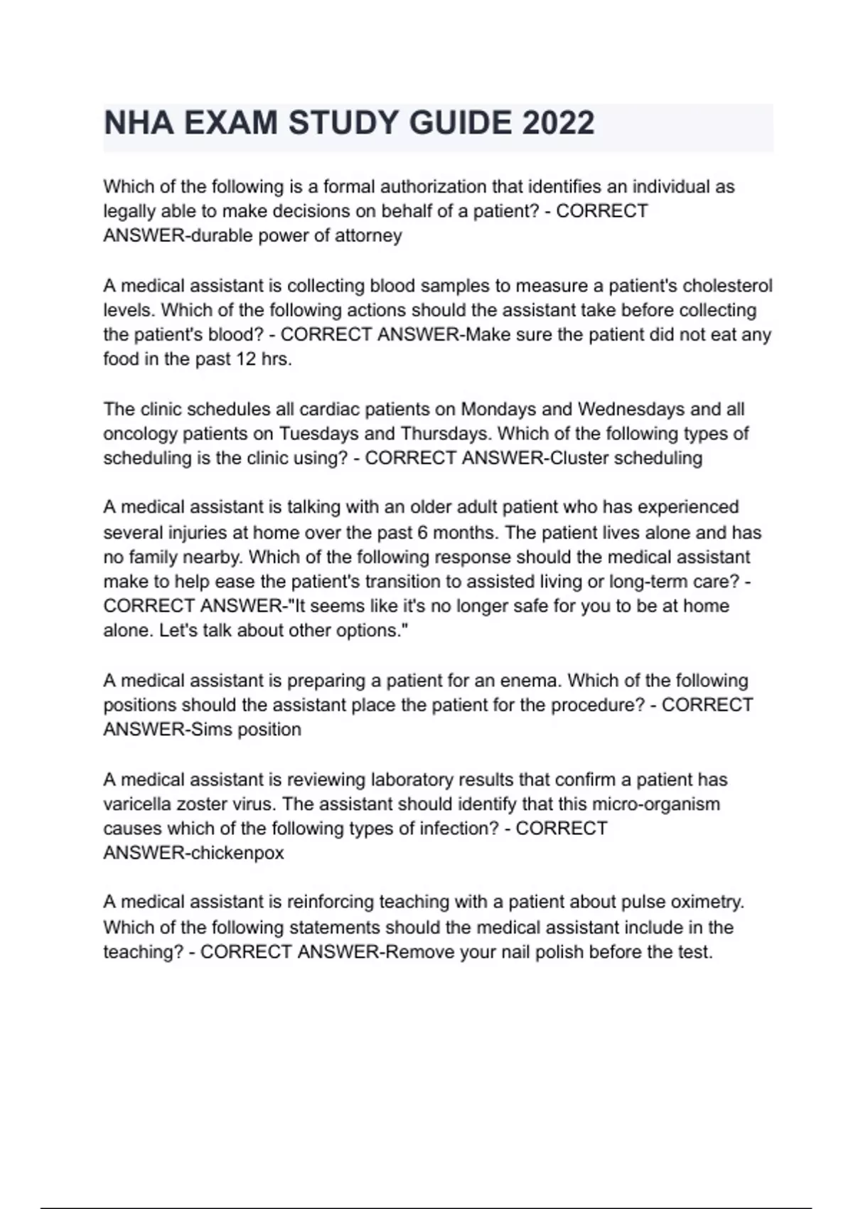 NHA EXAM STUDY GUIDE 2022 questions and answers latest 2024