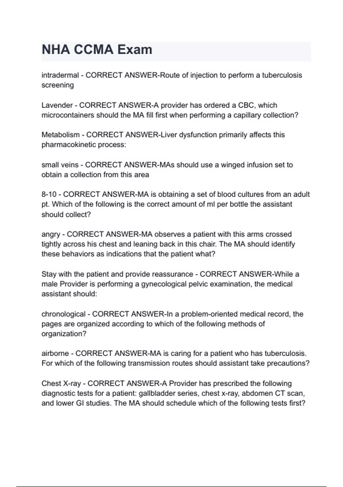 NHA CCMA Exam questions and answers latest 2024