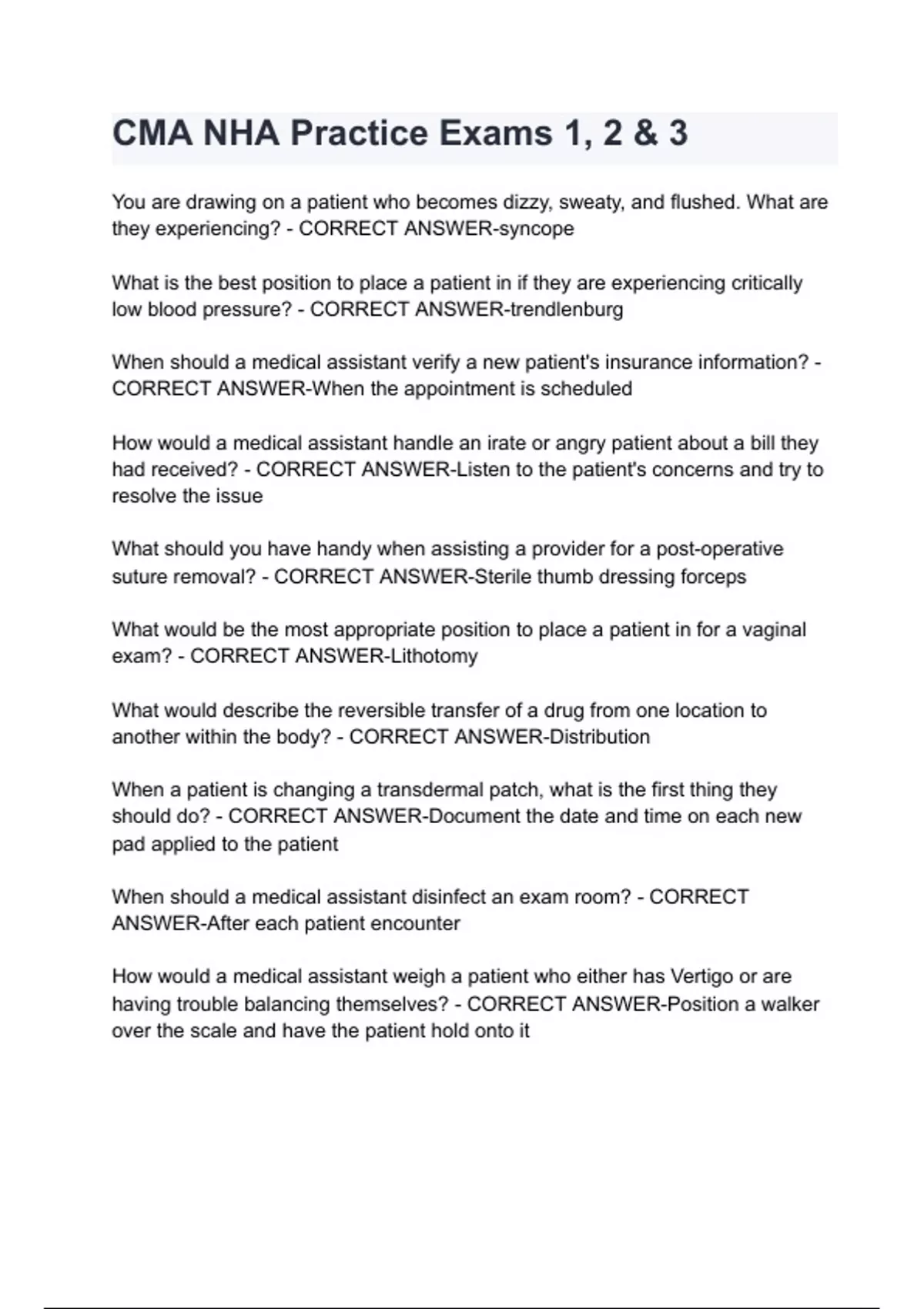 CMA NHA Practice Exams 1, 2 & 3 Questions and Answers