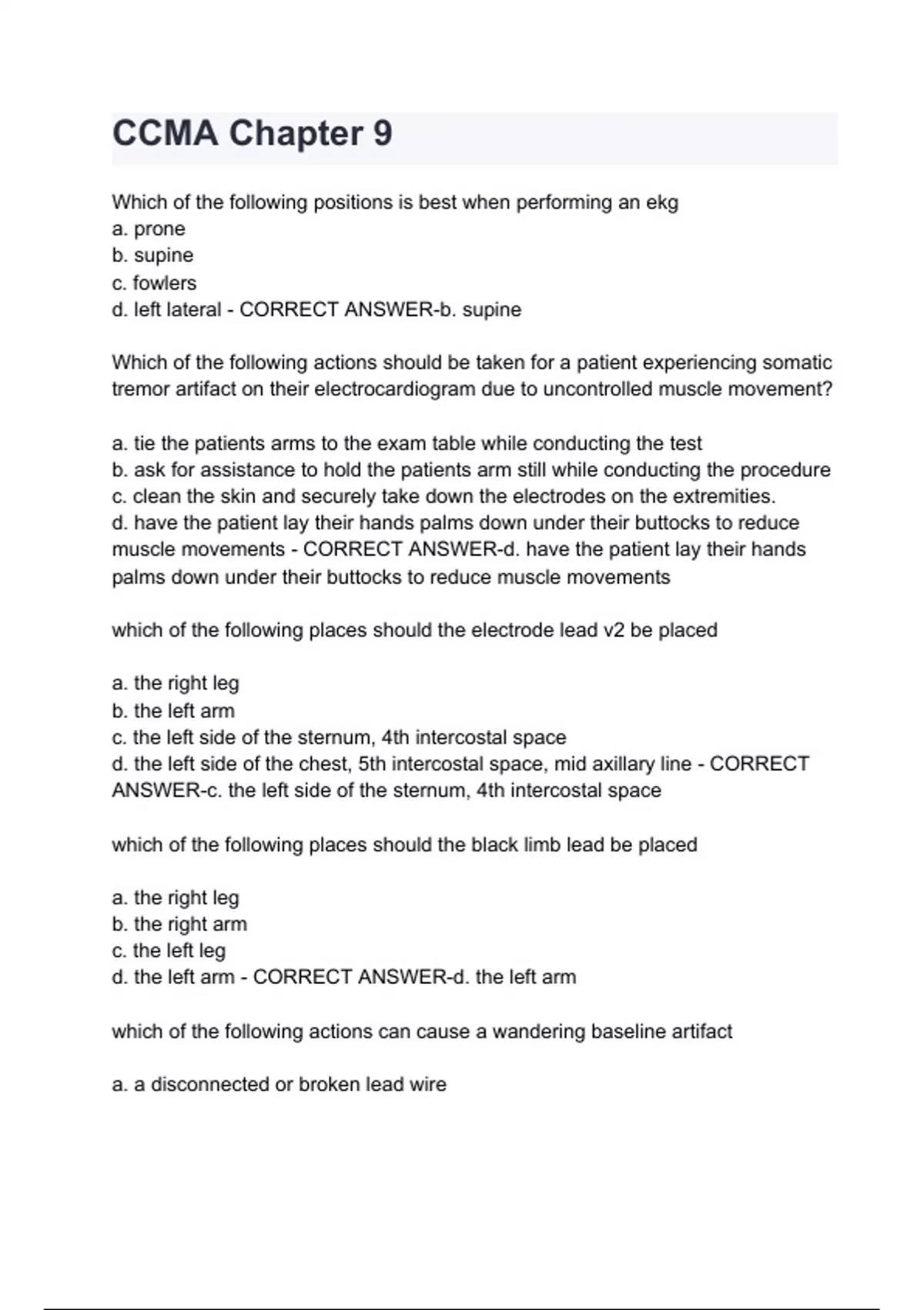 ccma chapter 9 questions and answers latest 2024
