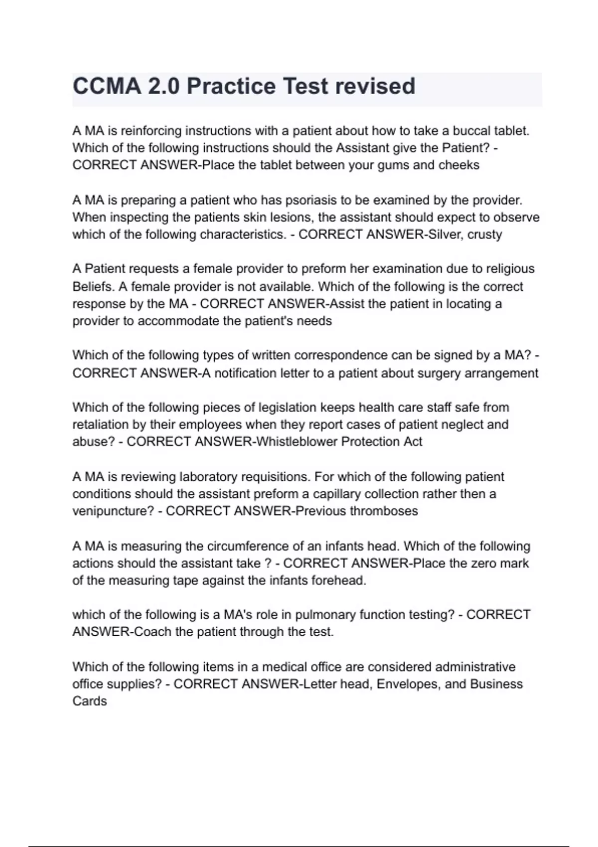 - CCMA 2.0 Practice revised