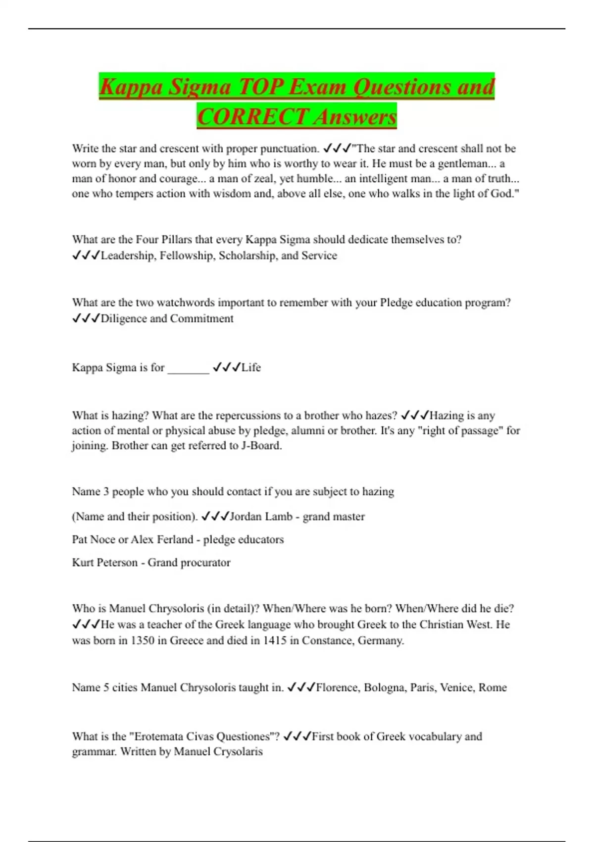 Kappa Sigma TOP Exam Questions and CORRECT Answers