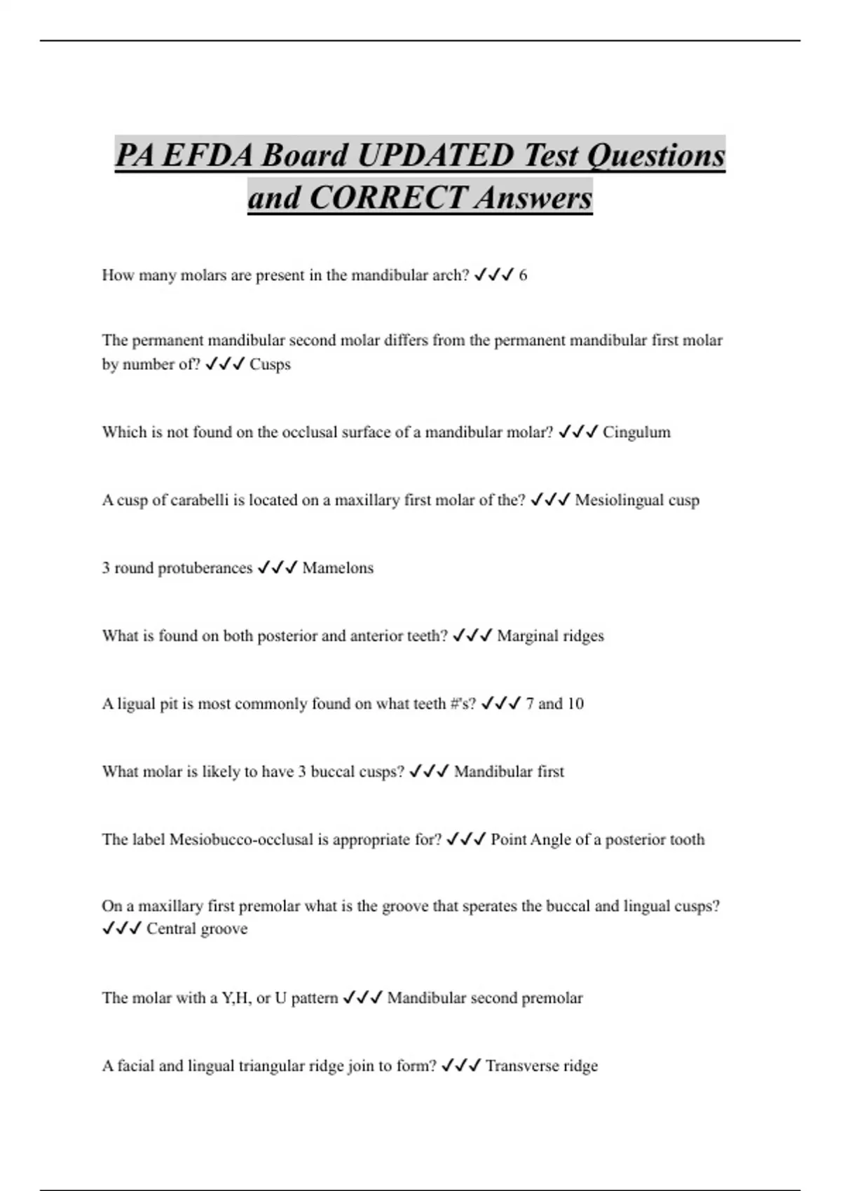 PA EFDA Board UPDATED Test Questions and CORRECT Answers